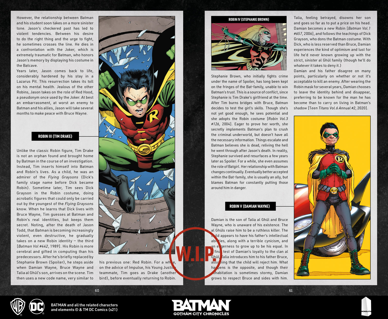 Monolith Games revealed new details for their next major release as they're preparing for a new tabletop RPG based on Batman. The game is called Batman Gotham City Chronicles: The Role-Playing Game, and it will be released sometime next year after the game received successful backing on Kickstarter. The team is currently working out the kinks and everything they have revealed, which they did so on Facebook over the weekend, is still a work-in-progress (as you'll see WIP logos on all the images they released below). But from the look of everything, this is going to be a pretty comprehensive Batman RPG title! We have info from the team below for you to read over, but we're giving you fair warning, there are SPOILERS below! So if you don't want to read about what will be in the book, turn around now.