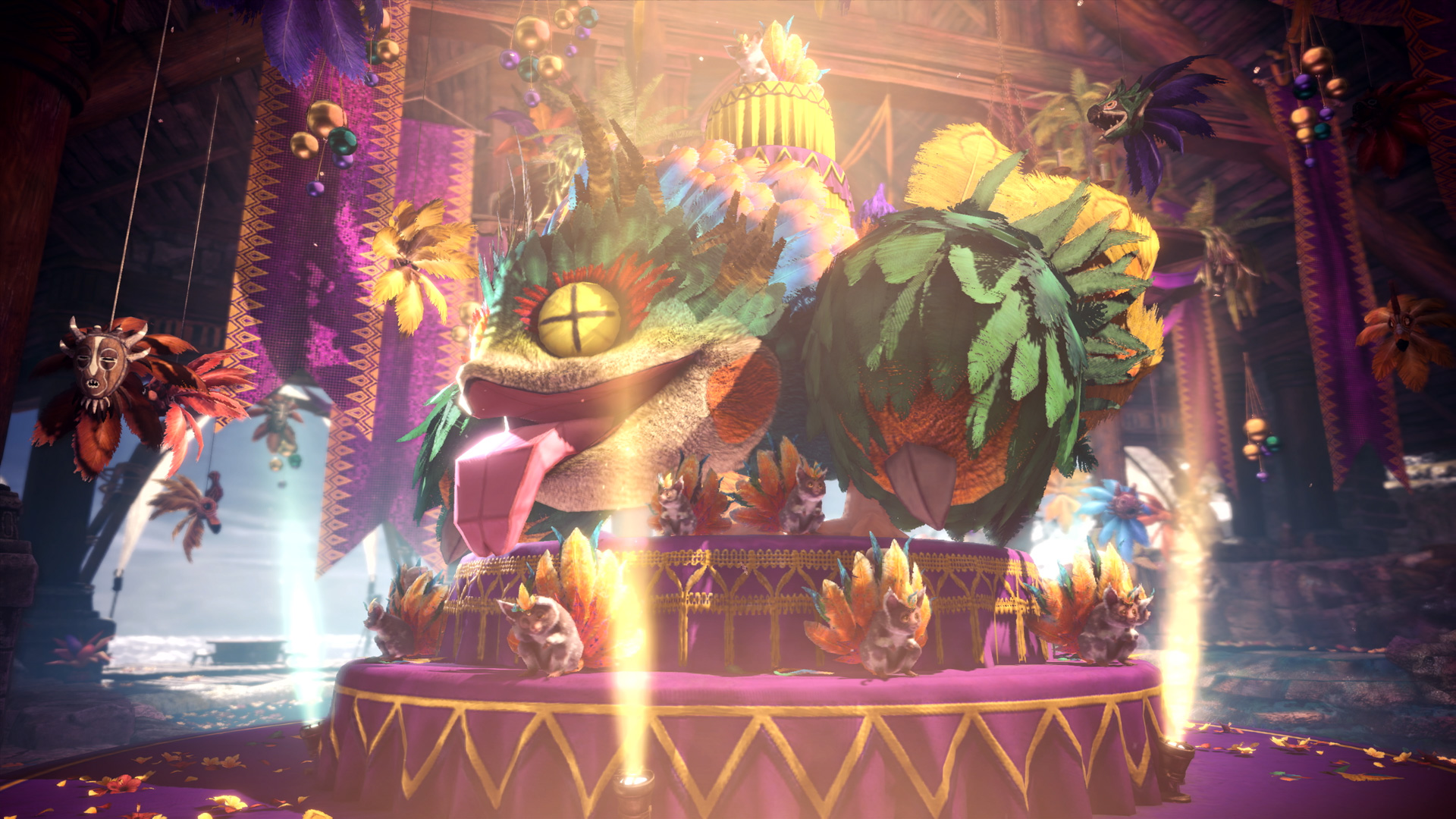 NEW SEASONAL EVENT: Starting July 22 through August 6, Seliana's Lunar Terrace will celebrate the summer with the new seasonal Sizzling Spice Fest. The whole Gathering Hub is also looking to turn up the heat, with meaty new meals at the canteen, carnival-inspired decorations, a new Poogie costume, seasonal Palico gear, paid seasonal Handler costume, and a new snowman design. Hunters looking to spice up their wardrobe can redeem tickets from log-in bonuses, seasonal bounties and event quests to obtain the new Passion α+ armor, new layered armor such as the monstrous new Kelbi and Aptonoth armor, rabbit ears, and more.