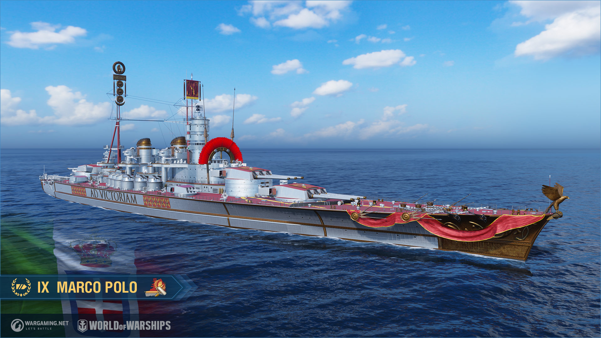 The Early Access rollout of Italian Battleships continues, as players continue to enjoy the tier IV to VI, as well as tier VIII and IX ships which hit the seas in Early Access with the release of Update 0.10.1. Italian Battleship containers earned as combat missions rewards may now drop one of the following Premium ships: VI Leone, VII Duca degli Abruzzi, VIII Roma, or IX Marco Polo, as well as special signals, Free XP, Regia Marina expendable camouflages, days of Warships Premium Account, and Doubloons.