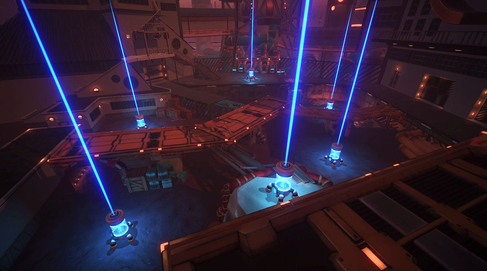 We get a chance to play a lot of multiplayer games at PAX West, but one of the most frantic we played was Aftercharge in the Indie Megabooth. The game is pretty simplistic for what it achieves. You have two teams of three, one side chooses three invisible robots to attack generators spread throughout the level, while the other side chooses three invincible guards to hunt them down and take them out before the generators die. At the end of the round, players switch sides for a best of three outcome.
