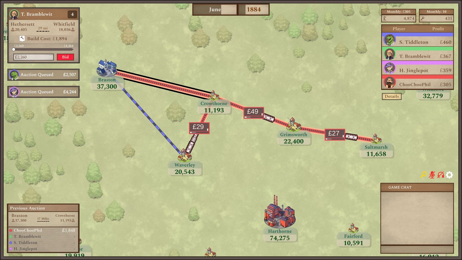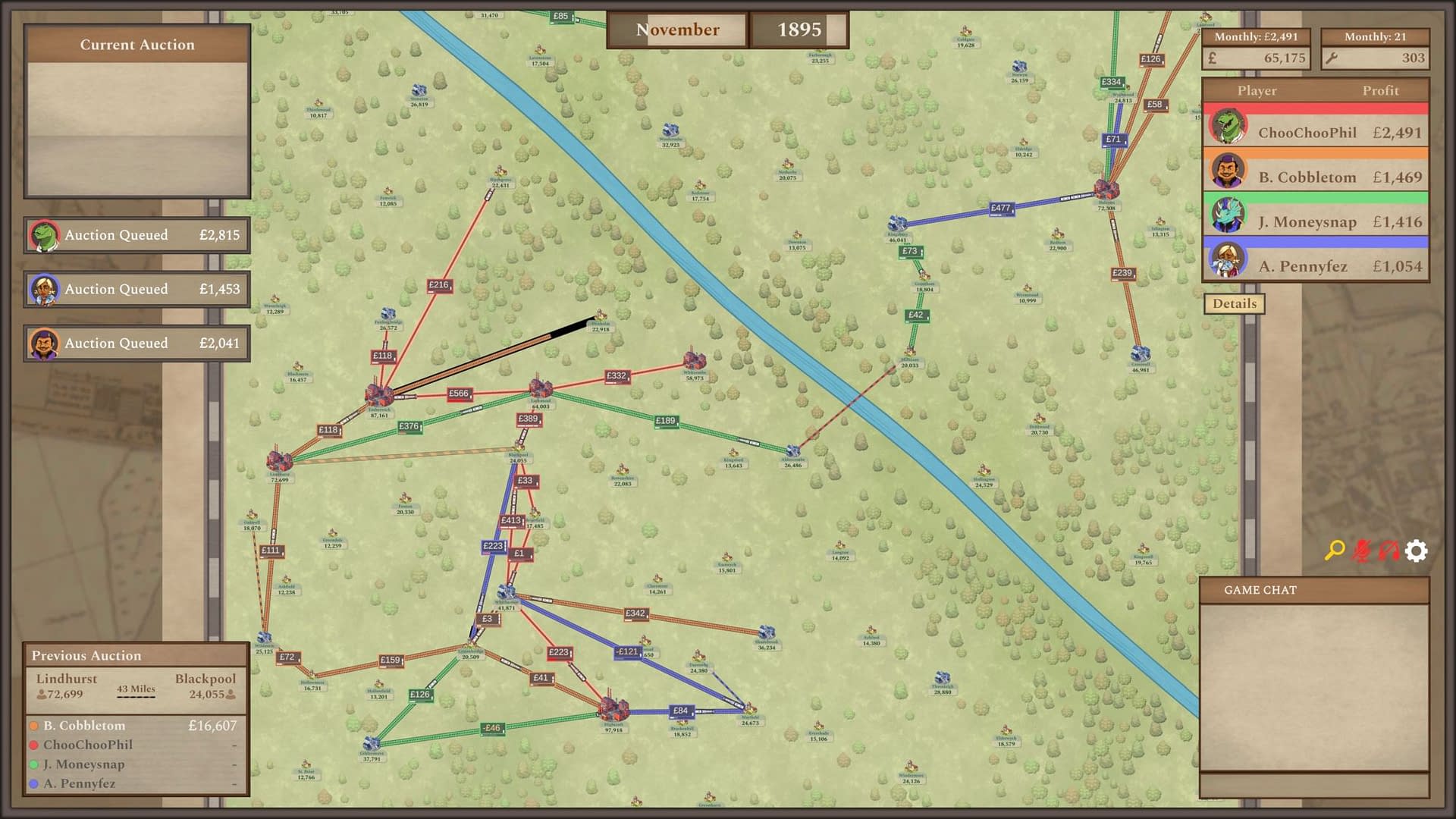 - Blind Auction System: Place the highest bid to secure access to the most profitable rail connections in the land – but be careful not to overspend!