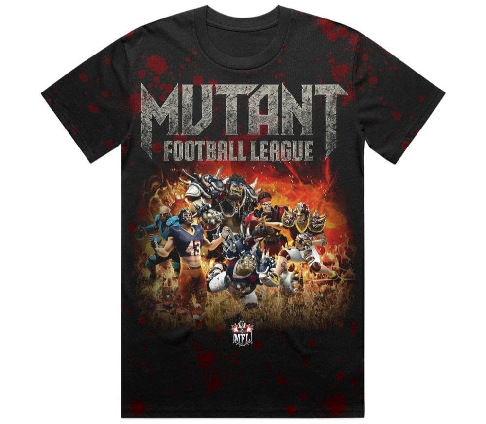 - Jerseys & T-Shirts — Several options based on multiple Mutant Football League teams, including the Cracksumskull Jugulars, Blitzburg Steelheads, Midway Mutants, New Goreleans Zombies, Diami Krakens, and more.