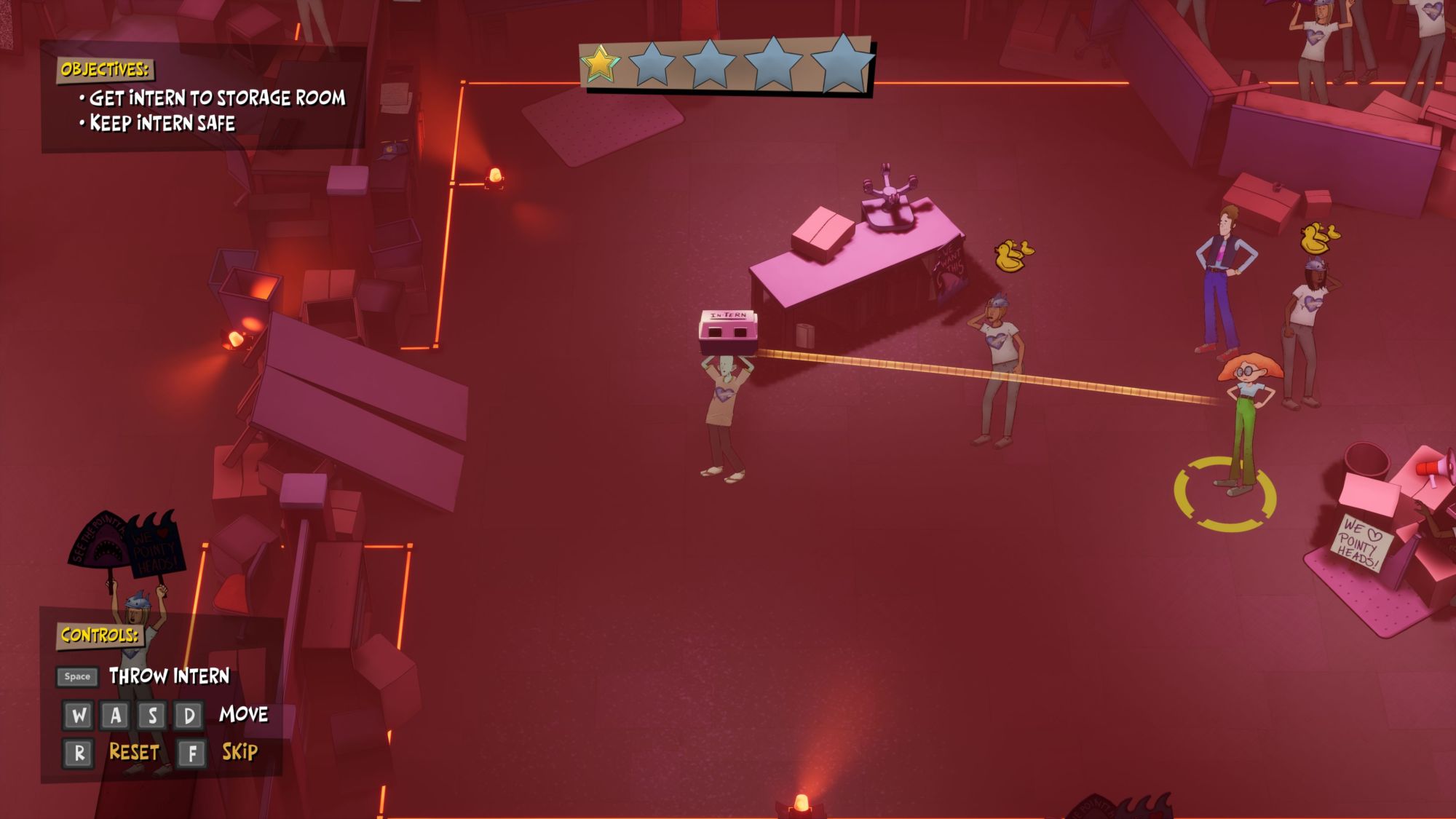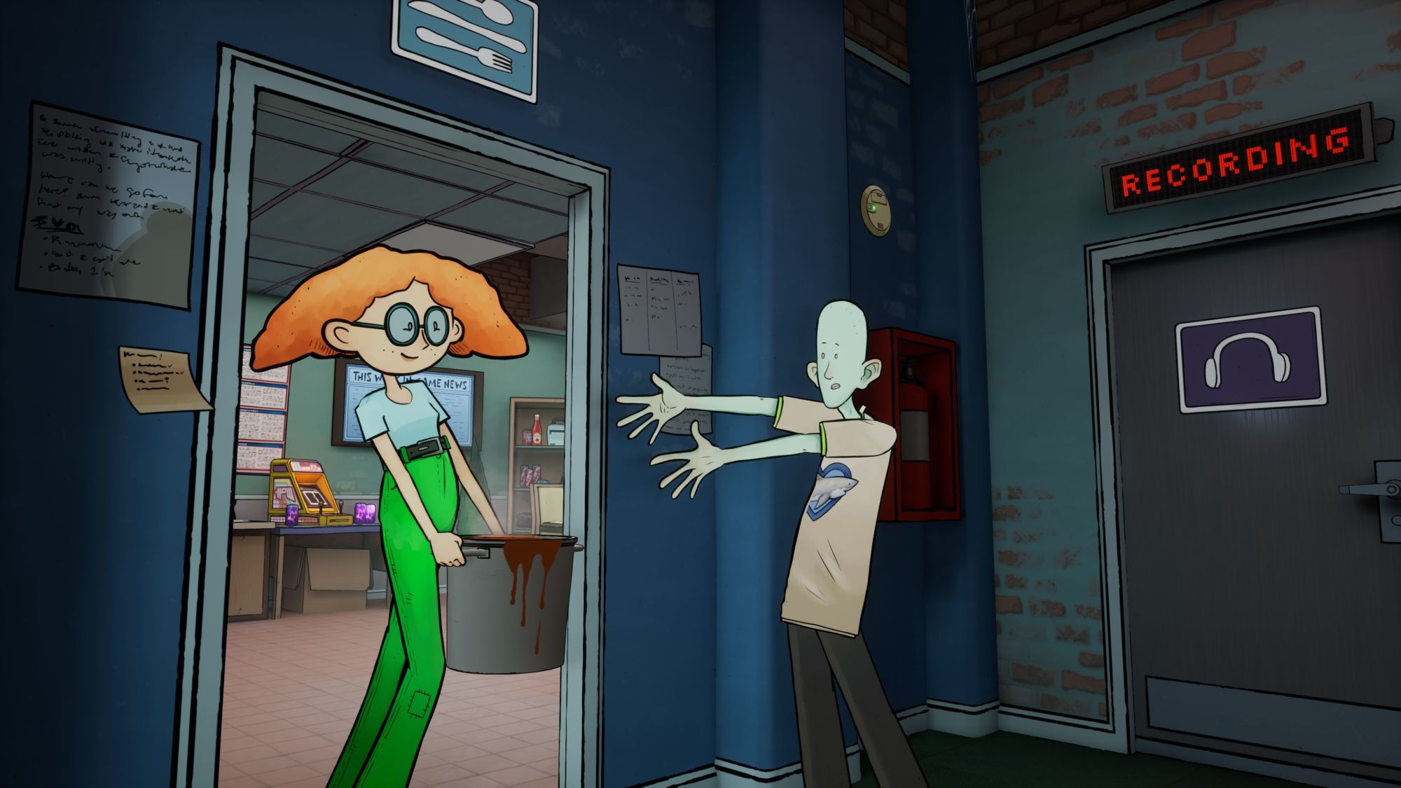In the opening episode, game animator Midge Potter shows up at Shovelworks for a job interview but gets way more than she bargained for. Before she can pull out her resume, she's given the job—and the unenviable task of fending off overzealous fans. How will Midge calm the masses? Can she stay hidden from feral engineers? Will Shovelworks Studios ever make a game that scores higher than 3 out of 10? Equal parts video game and animated show, 3 Out Of 10 keeps players guessing with eye-catching, fully voiced cutscenes and reverent nods to every conceivable genre. In this love letter to gaming and the ridiculous business surrounding it, discover new mechanics every week, from first-person shooting and racing to Episode 1's dash dining, figure posing, and football-esque keepaway mini-games. 3 Out OF10 strives for accessibility and letting players follow or replay the story at their leisure. Viewers can rewind or skip any scene or interactive segment, and upon completing an episode, can dive back into any part to re-experience it or beat their high scores. Steal a fresh look at the joys and terrors of game development, be they incapable robot office assistants, eager-to-help sacrificial interns, or the shadowy organizations unpinning the entire industry (and their shadowy fashion accessories).