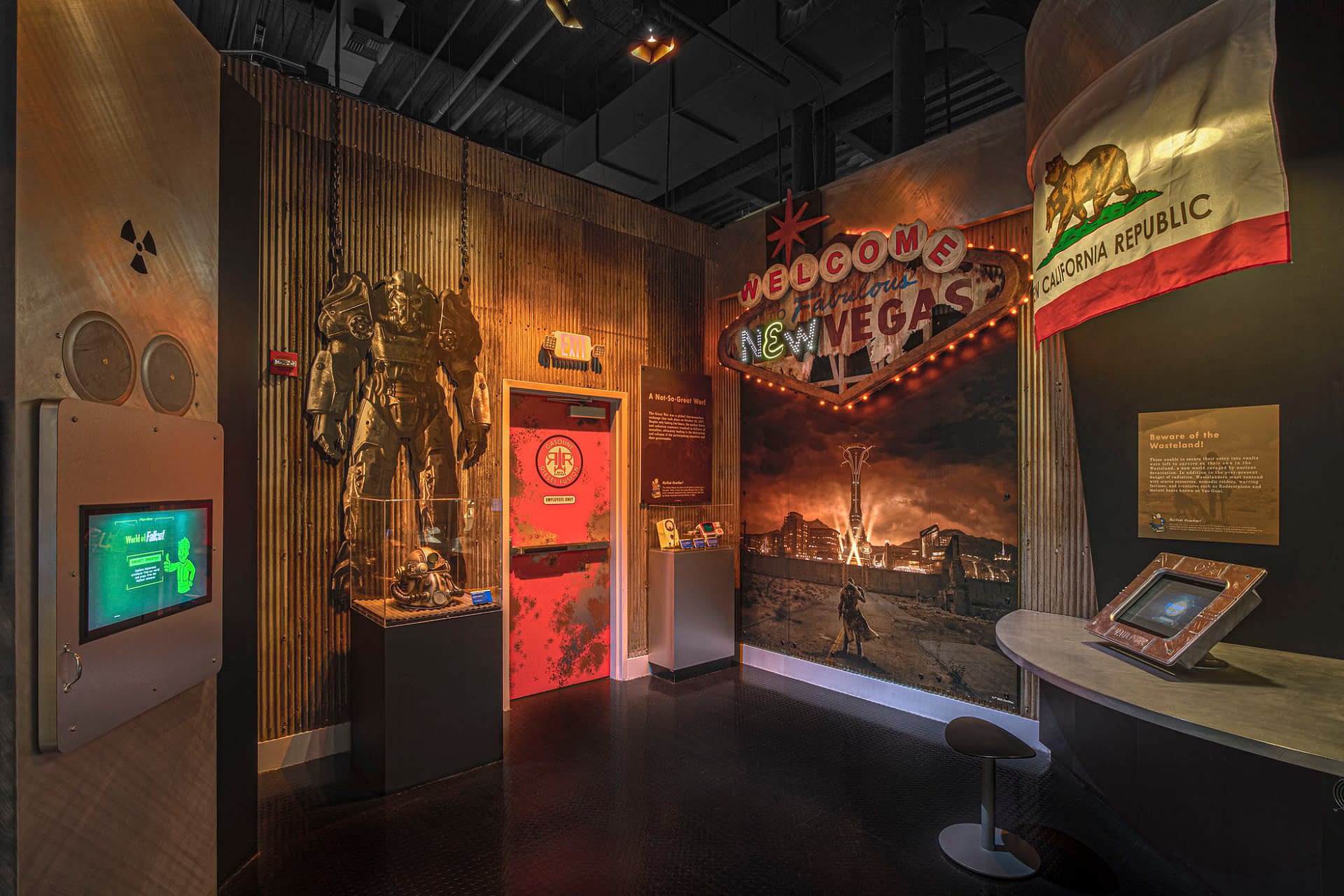 - Interactive displays connect Fallout’s lore and iconic Vault suits to real-world nuclear history in Las Vegas.