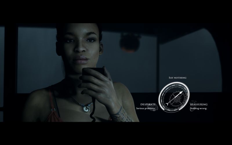 The demo we got to play showed four people being kidnapped on a boat at sea in the middle of a storm by what appears to be three pirates. One of the characters attempts to make an escape and help the others, but it doesn't go very far. The story then switches to another, who owns the boat and is put in the position of helping them find what they're looking for. Which, in this story, is a derelict ghost ship in the middle of the ocean. While the story is cool to look at, I got two issues with this demo. First, the eyes. I'm sorry, Supermassive devs, but these people stare at me and express no emotion, even with mocap. I look into their eyes and they look dead inside.