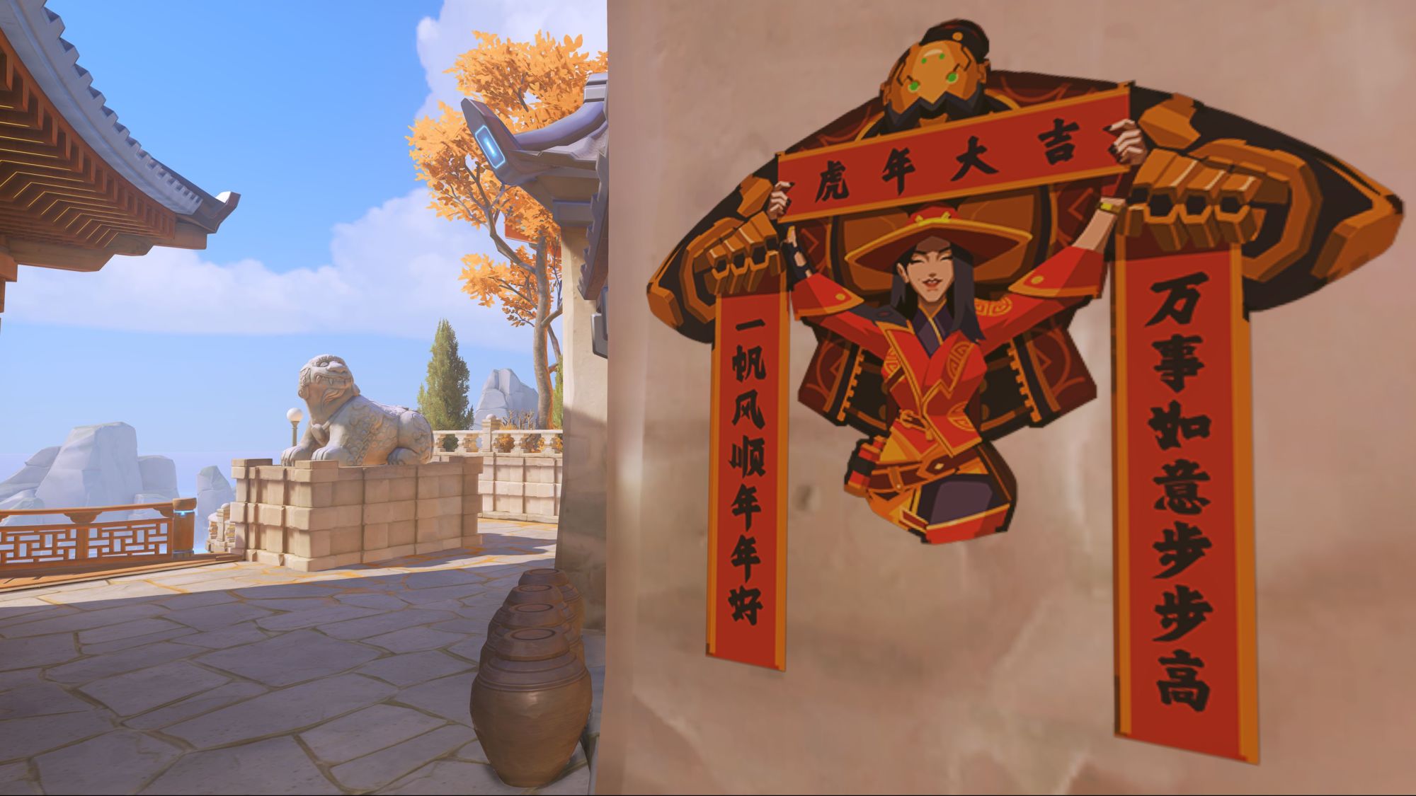 Ring in the Year of the Tiger with a resounding roar! Celebrate the return of Overwatch Lunar New Year with festive cosmetics, weekly rewards, and returning brawls. To commemorate the occasion, we're bringing rich new rewards for you to unlock: set a lantern alight with Genji, illuminate the night with Orisa's sparklers, don some New Year-ready attire as Seolbim Mercy, flit around the battlefield in Nezha Tracer's fire-heeled shoes, and more!