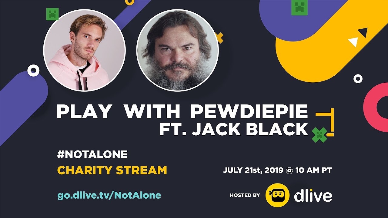 It looks like PewDiePie and Jack Black are getting together for a good cause as they will be ding a Minecraft charity stream on DLive. The two will be playing for a livestream fundraiser on tomorrow, July 21st, gathering viewer donations for NAMI, Inc (National Alliance on Mental Illness), a charity dedicated to increasing mental health support and resources within the gaming community. There doesn't seem to be a major plan other than the two will meet on a Minecraft server and mess around with each other building who the hell knows what, all for a good cause.