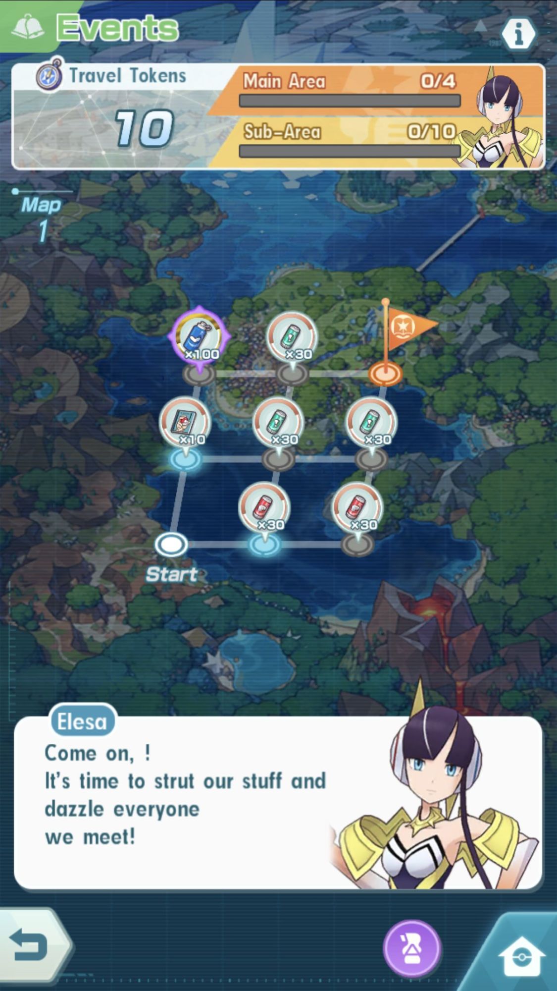 - New Story Event Features Sygna Suit Elesa & Rotom: A new type of story event titled "Shining Star" will feature the professional model of the Unova region, Elesa. Instead of the traditional Story Mission-style format that players are used to, players will have to battle against AI opponents and traverse a series of maps in order to progress the story. Only players who have completed Chapter 1 of the Main Story are eligible to participate in "Shining Star." Sygna Suit Elesa & Rotom will also be featured in the "Sygna Suit Elesa Spotlight Scout." Both the story event and the spotlight scout will be available from February 27 at 10:00PM Pacific time to March 15 at 10:59PM Pacific time.