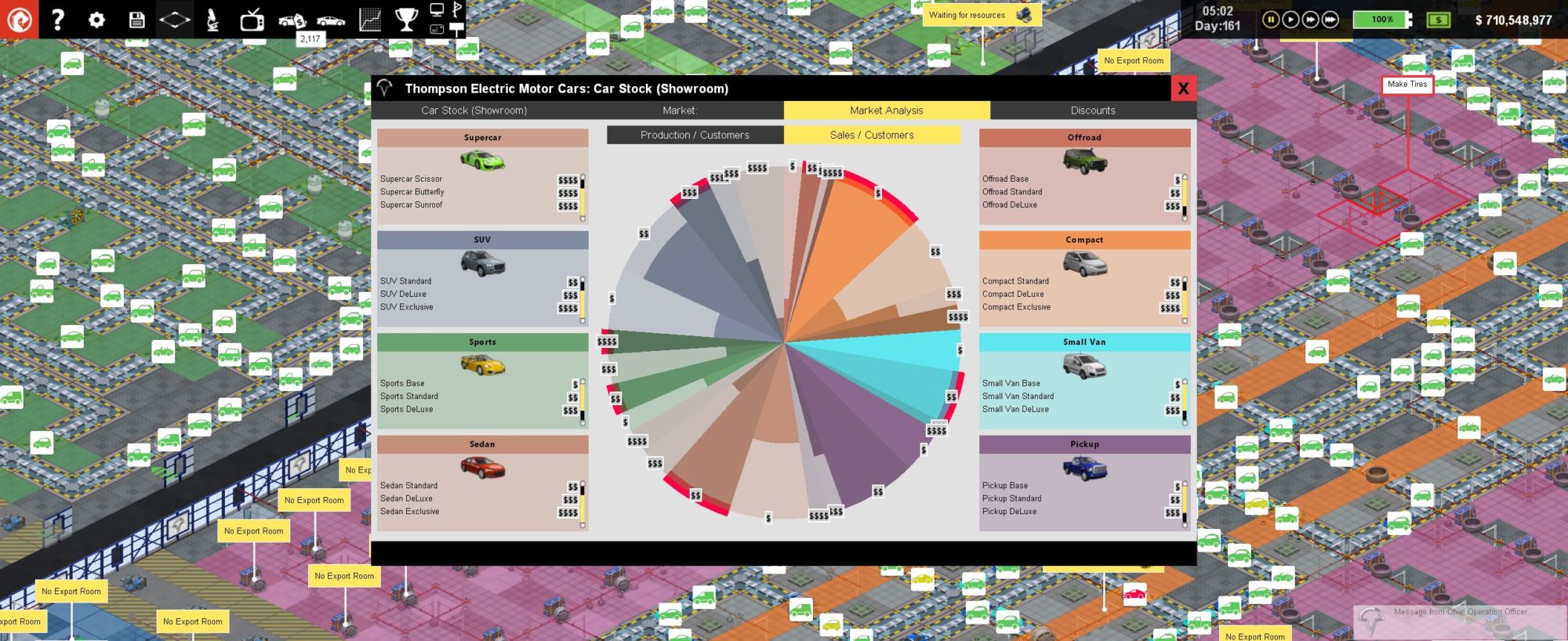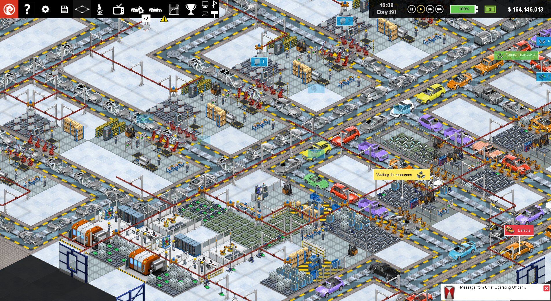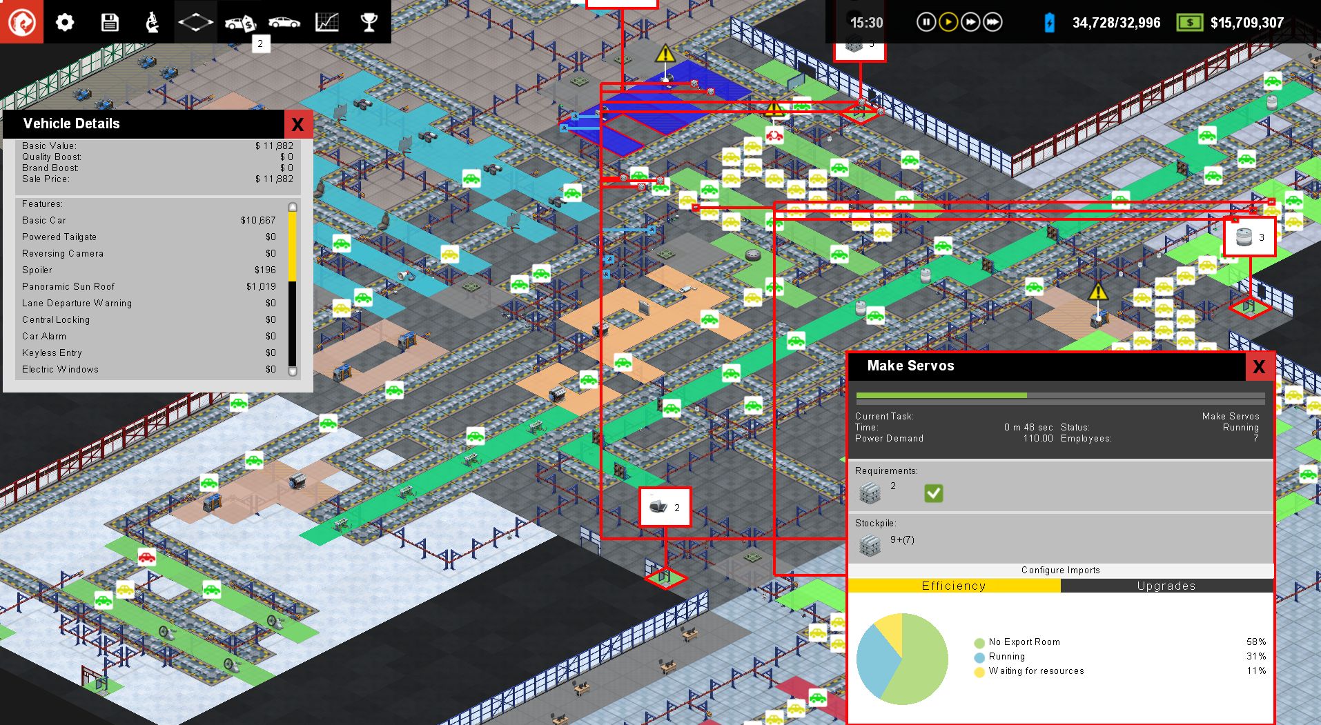 In practice, of course, life is not so simple. When you get to grips with your first factory design, it certainly will not feel in a state of pure flow… or profit for that matter. Making a handful of built-to-order cars and breaking even is one thing…but competing with the big multinationals and churning out thousands of cars for the mass market is a whole new ballgame. To win market share from the big companies you are going to need planning, an appreciation of future technology, a careful eye on your bottom line, and an ability to design a factory layout that makes use of every square meter, and cuts production costs per car to the absolute minimum. Have you got what it takes to win?