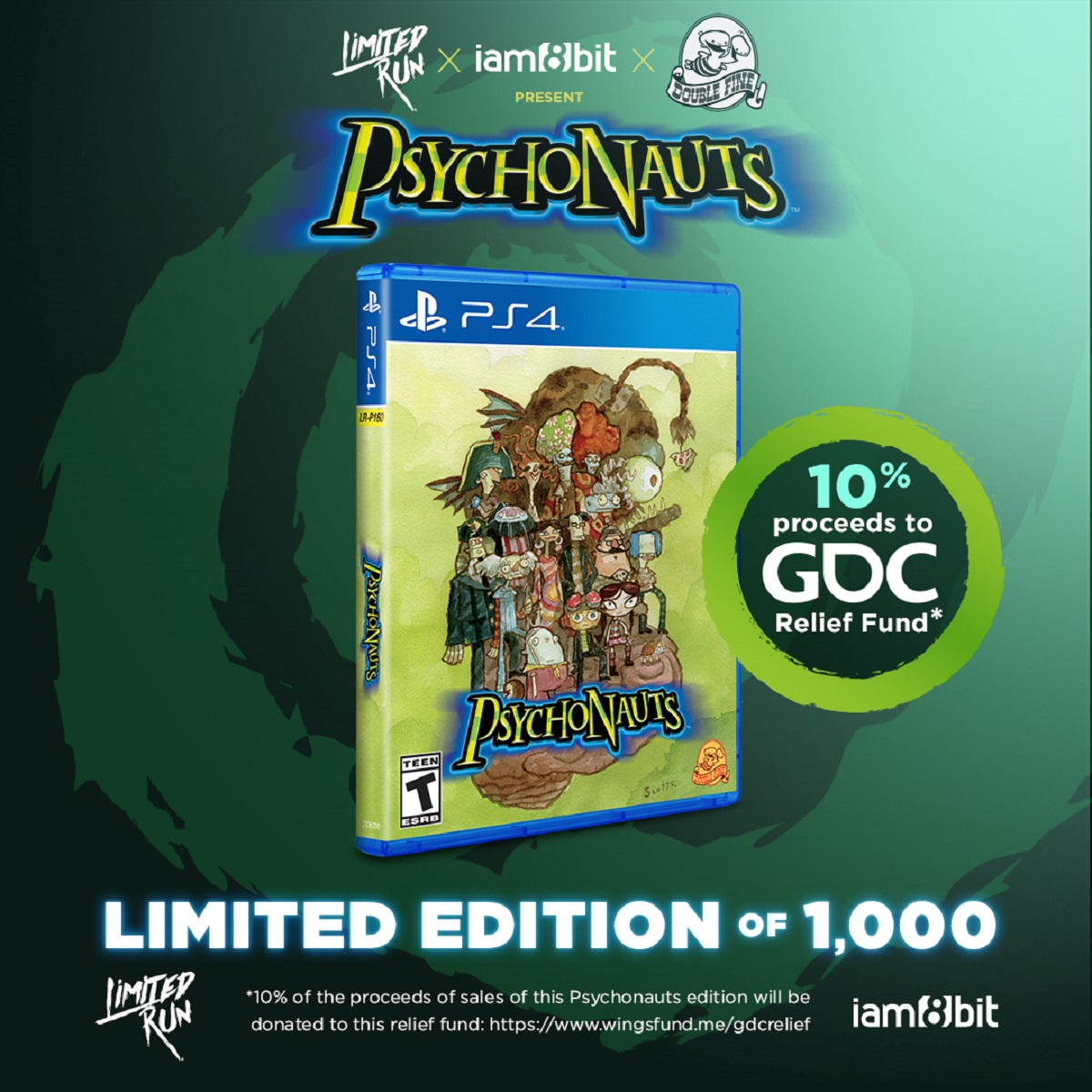 Starting tomorrow, iam8bit and Limited Run Games will be selling a limited run of a physical edition of Double Fine's Psychonauts to help GDC attending studios. The run will be limited to 1,000 copies for the PS4, with 10% of the proceeds going toward the GDC Relief Charity initiative. This one will come with an all-new exclusive variant cover with art by Psychonauts art director, Scott Campbell. As you may recall, while most major companies were able to pull out and receive little loss, many indie developers were left having to foot the bill themselves. This will help aid those smaller companies who are basically paying out-of-pocket. Here's a few more details on the release.