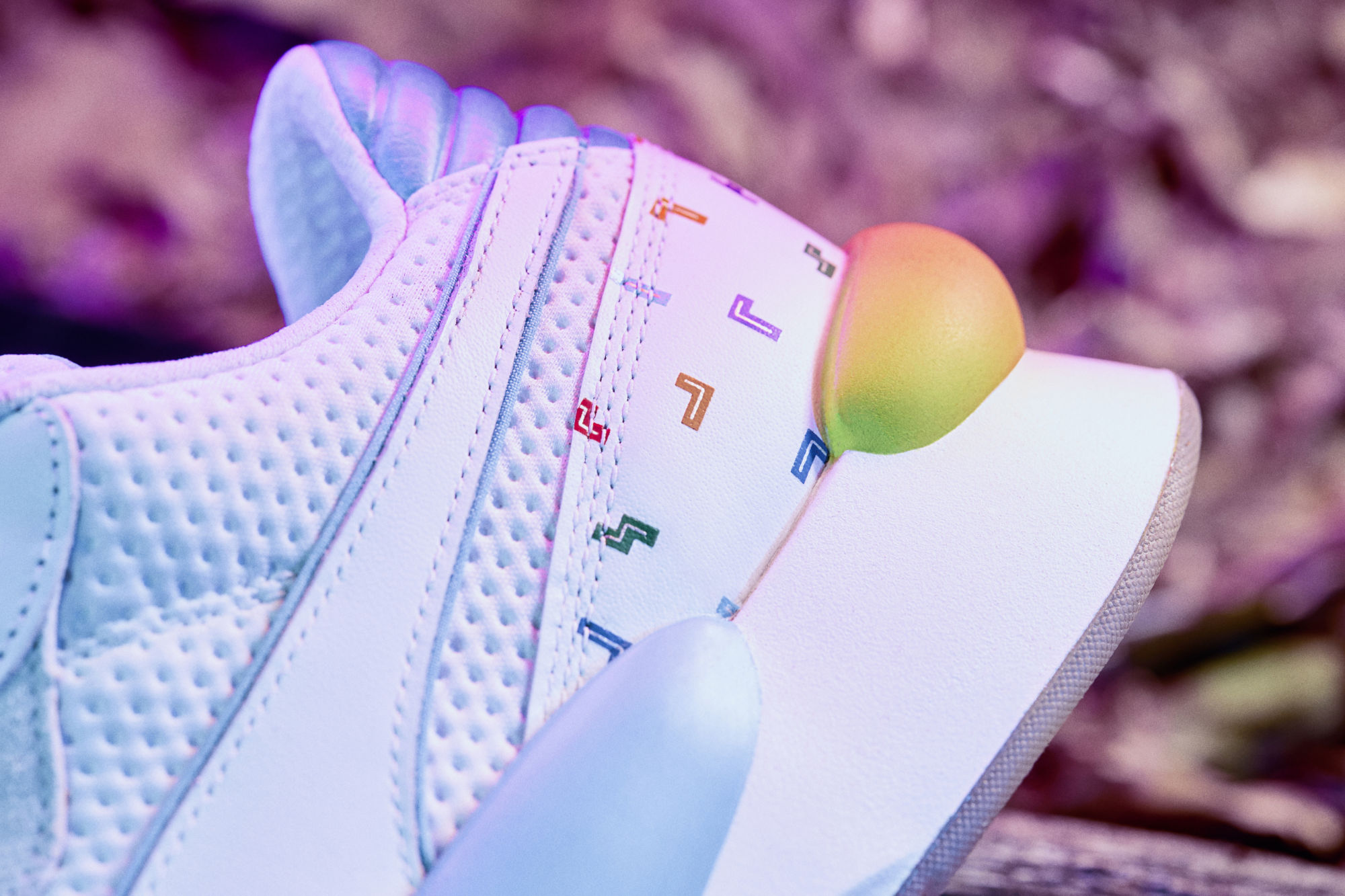 The PUMA x Tetris collection includes PUMA's future-retro sneakers RS 9.8 and RS-X in daring colors inspired by the game, with falling Tetriminos sprinkled across the heel. Reflective trimmings and a 3D heat-cut Tetris tongue logo add to the striking look of the RS-X. The phrase "HARD DROP" printed on the RS-X's 3D heel is a nod to the command in the game, which makes the Tetriminos land instantly.