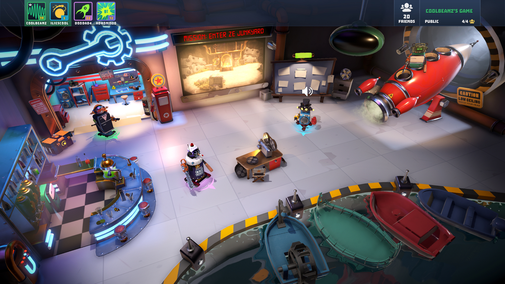 The enemies in the game range from annoying to challenging. Some are basically here for the kill feed, they're drones that have been sent to die quickly and take up time to distract you from the goal. Others require some strategy, such as one that required a bit of dazing after being hit with a tennis ball launcher. That's not including bosses who require you to both strategize on how to attack them while also looking for patterns. It's your standard platformer affair, but done at a 3D level so there are options for you to take with Frankie and his co-op friend that you normally wouldn't get on a 2D plane.