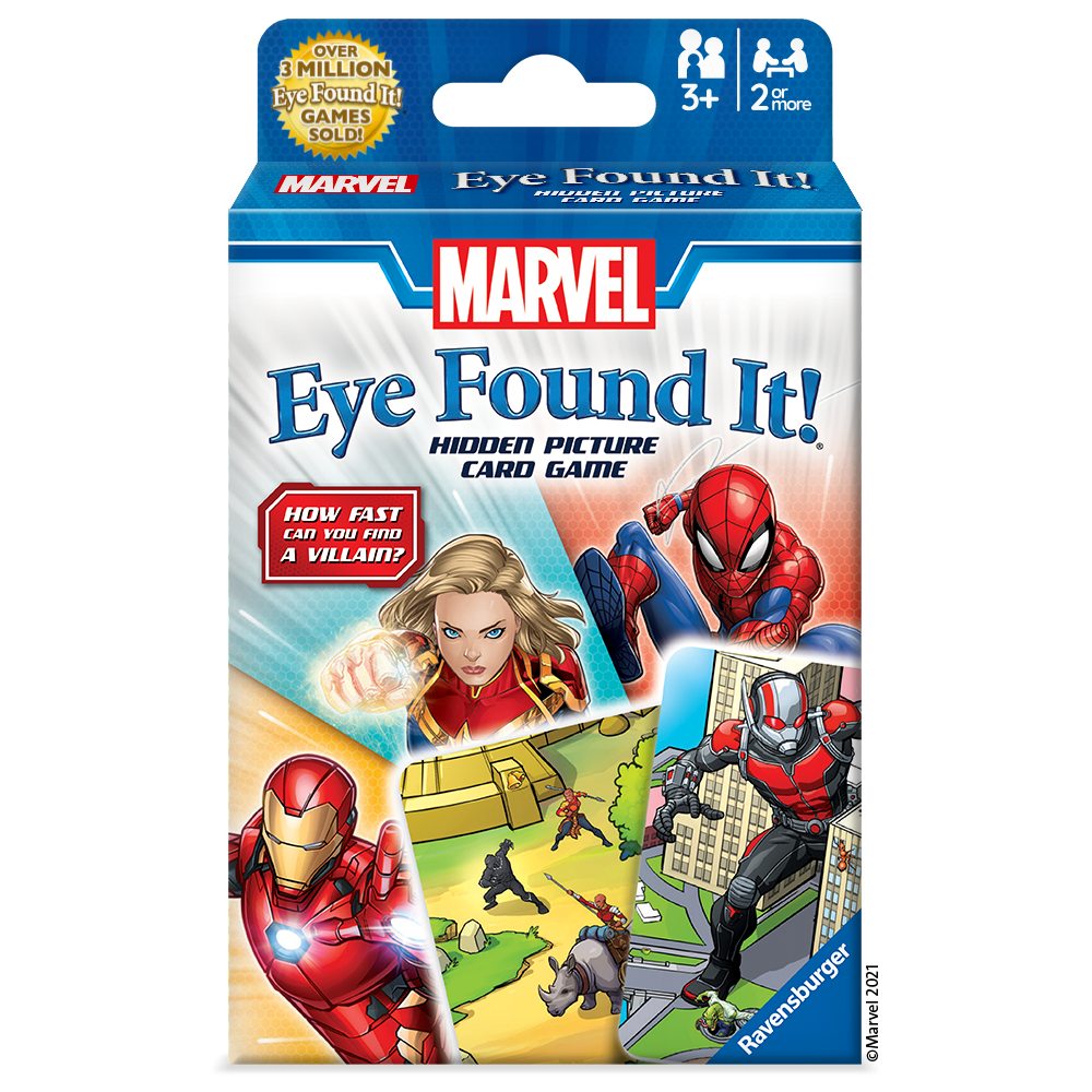 Gather crunchy tacos, Freezes and other menu items to feed your Crew (Happier Hour Heroes, Drive Thru Divas, and more). While any menu items will fill them up, you'll need to satisfy your Crews' specific cravings to collect crave chips. When all the crave chips are gone, the game is over and the player with the most points wins! (Ages 8+ / $16.99 MSRP / Available June 2021)Marvel Eye Found It! Card Game