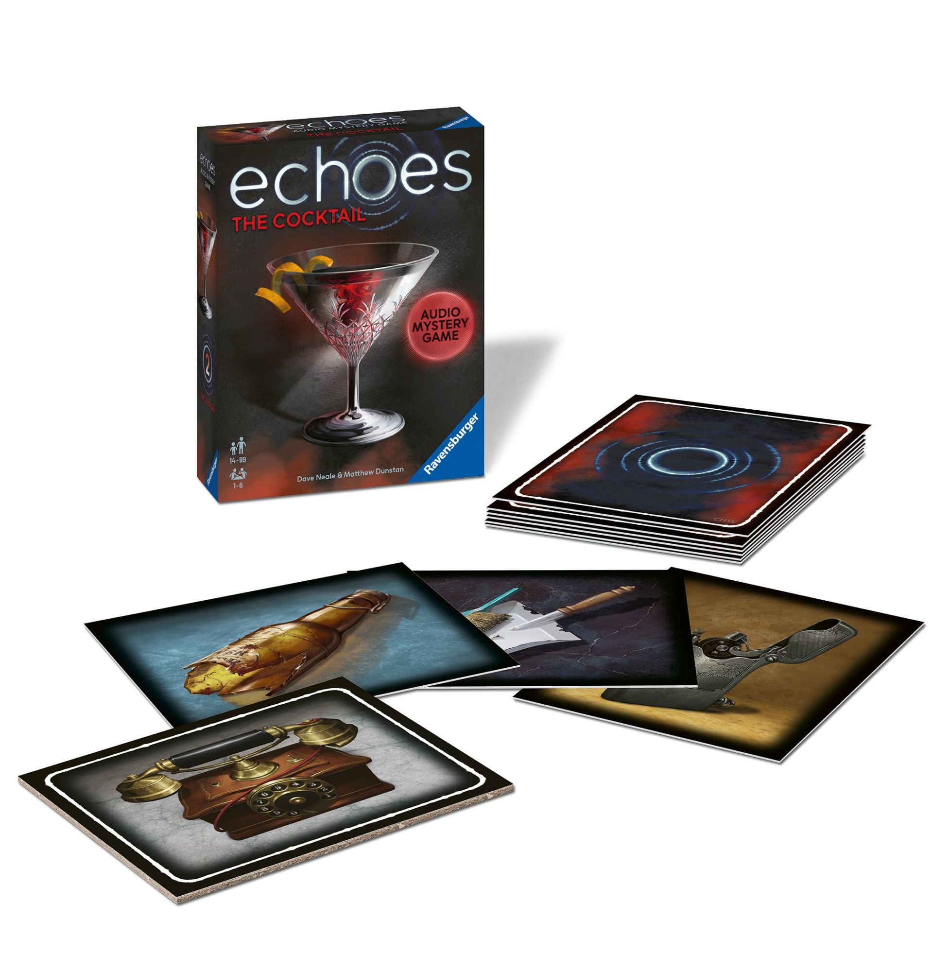 Echoes: An Audio Mystery Game offers a thrilling experience through an app-aided card game. Using a free companion app, players wave their phone over a deck of illustrated cards, triggering sound clues. The sound clues and illustrations must be pieced together to solve a mystery. The echoes line will launch this fall with two stories. In echoes: The Dancer, players work to unravel the mystery of a haunting manor in the Scottish countryside, and in echoes: The Cocktail, players visit a smoky New York speakeasy and uncover the truth about the mobster Cruel Steve.
