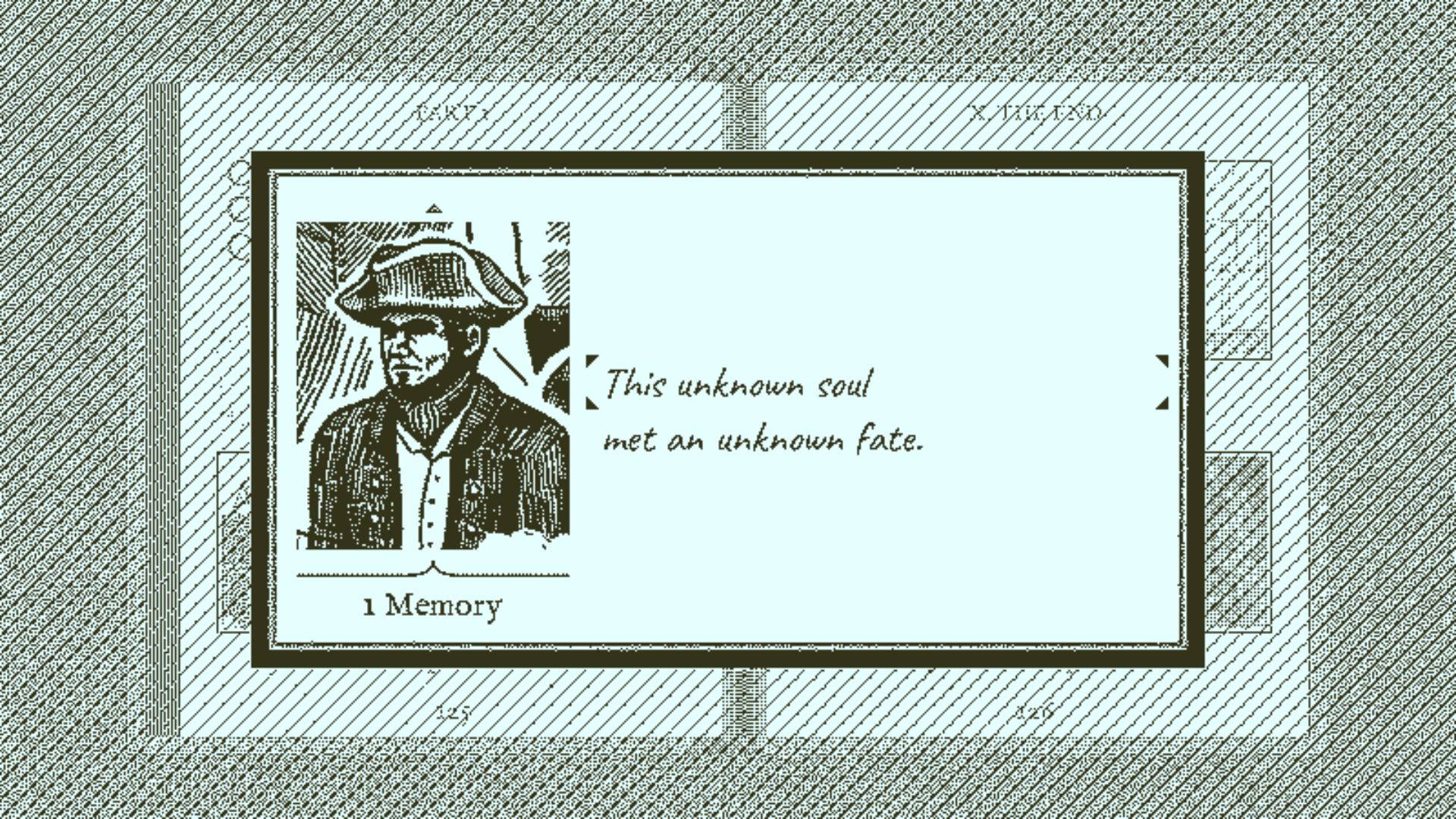 In 1802, the merchant ship Obra Dinn set out from London for the Orient with over 200 tons of trade goods. Six months later it hadn't met its rendezvous point at the Cape of Good Hope and was declared lost at sea. Early this morning of October 14th, 1807, the Obra Dinn drifted into port at Falmouth with damaged sails and no visible crew. As insurance investigator for the East India Company's London Office, dispatch immediately to Falmouth, find means to board the ship, and prepare an assessment of damages. Return of the Obra Dinn is a first-person mystery adventure based on exploration and logical deduction.