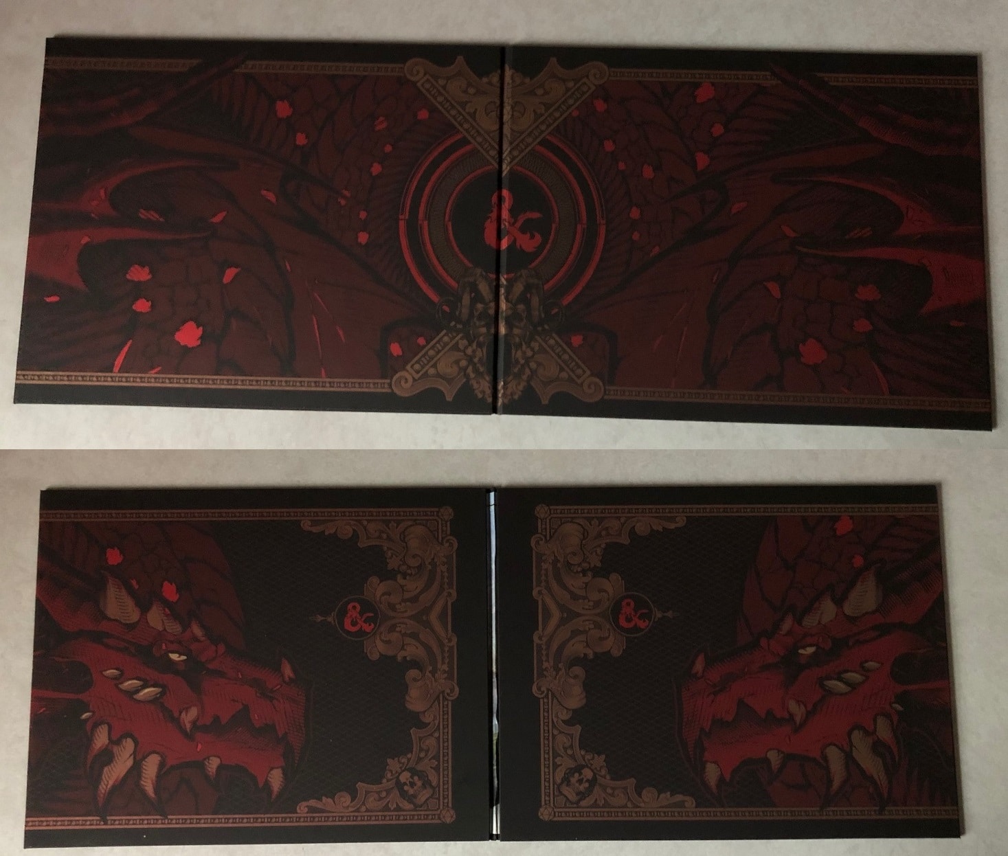 This edition of the set comes with its own Dungeon Master's screen, which as you can see from the photos below matches the outside of the box. This is gorgeous and has a number of finer details that are exquisitely done, especially on the dragon's face as it looks menacing at you. All of the information on the flip side is all that you would normally see on a DM's screen with stats and effects at the ready for you to check out and get info at a glance.