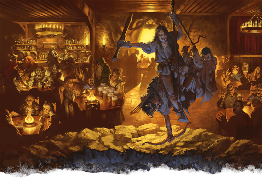Occasionally he gets some apprentices, but more often than not he gets adventurers who decide to head down into the depths and see what's there. One such adventurer was Durnan, who came back alive with tons of riches. He demolished the tower that Halestar used to have and built the Yawning Portal tavern right over it, but kept the remaining hole where the tower once stood in the middle of his tavern. Now if you feel like trying your luck, you can pay the man some money to be lowered down into the hole and try to claim some riches for yourself. And that's where you find yourself at the start of the adventure: either taking up one of a few different quests to go down and find specific items, or simply diving head first into the unknown for your own curiosity.