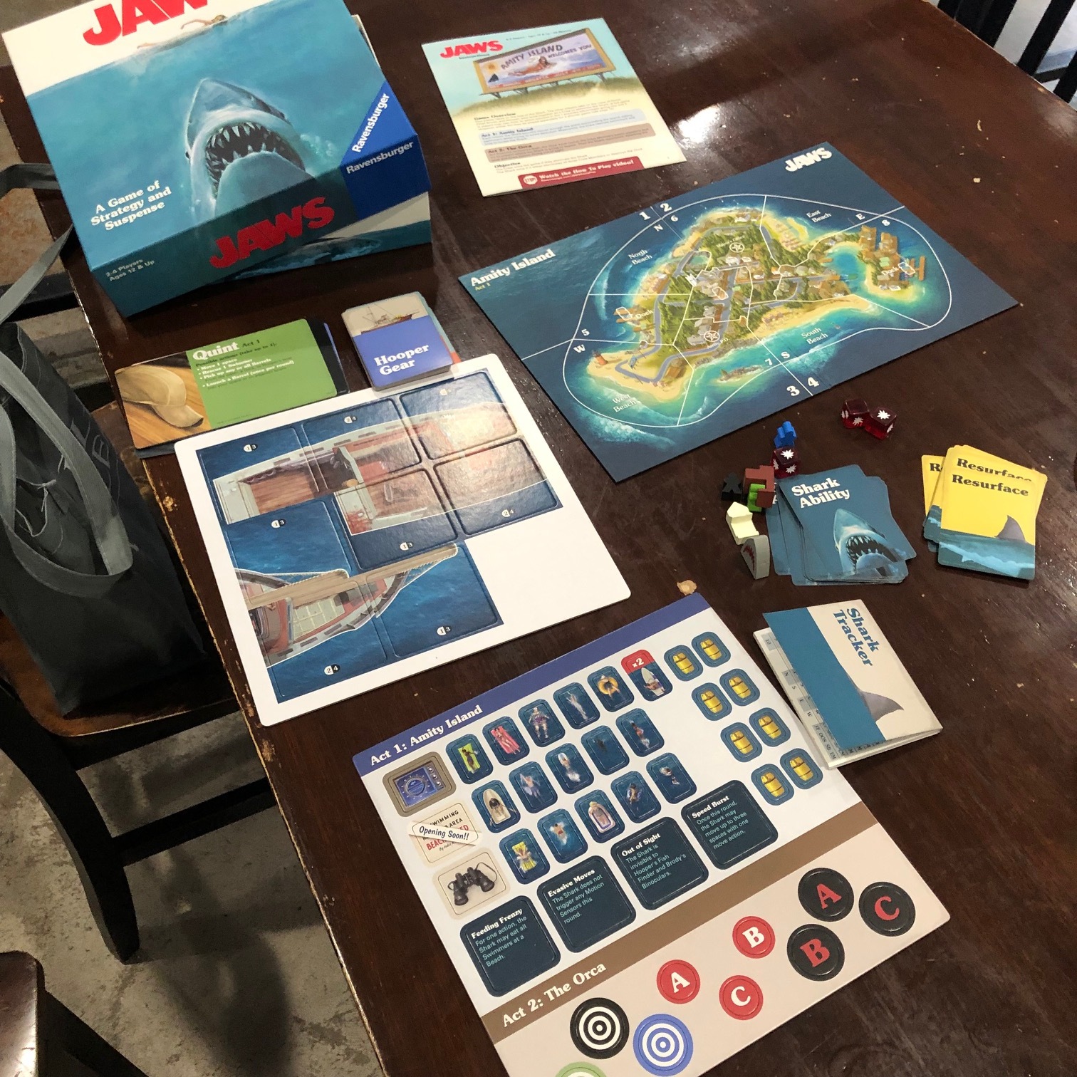 There's a fair amount of strategy in the first act on both sides as you're both tracking down an aquatic killer and trying to save as many people as possible. It almost seems pretty easy for the shark to get around, at least, that's how it was in our game as the shark comes with a few special ability cards that can help it get around or take huge amounts of people in a single bite. The first act was definitely the more challenging of the two as you're both racing to accomplish goals in order to build up to what happens in Act Two.