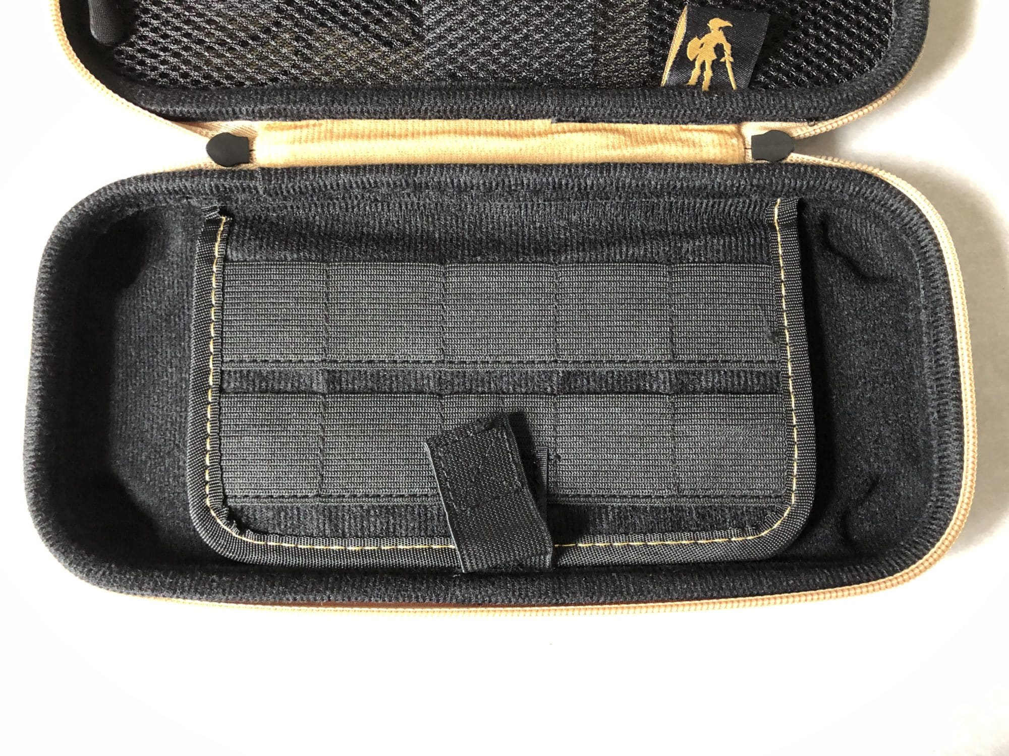 The top part of the case comes with a zipper mesh pouch for added storage of things you'll need to keep with you. Which came with that lovely Link tag at the bottom just to remind you it's a Zelda case. I used this pouch to keep items like the charging cord from the previously mentioned Travel Kit, as well as my passport when I made a trip overseas because the case made an easier place to hold it.