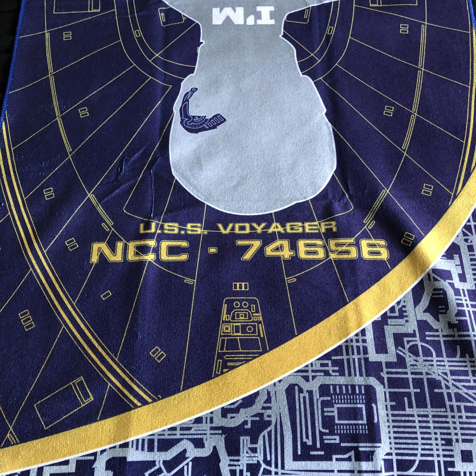 Next is a bit of an oddity as we were given a Seven Of Nine beach towel. You get a silhouette of Jeri Ryan's character with the phrase "I'm often amused by human behavior" in the middle, along with some technical specs and an image of Voyager's saucer section. I kinda dig it, but the big issue with this is that it's not a very wide towel. I compared it to a couple other beach towels I have and it's actually a good three inches smaller than a standard beach towel wide and nearly a foot smaller tall. If you get to the basics of it, a beach towel when used at the beach is supposed to give you comfort on the sand. This barely gets the job done. I would say this is more for putting other stuff on than laying on it yourself.