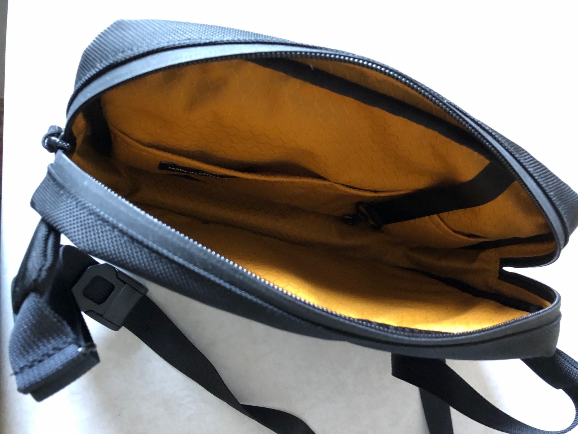 First off, there are two main compartments to the Pouch, being the main compartment and the front pocket. Both are sealed with YKK water-repellent zippers and an exterior that is designed to resist the elements. The front pocket has a soft lining on the inside, big enough to carry various pieces of tech like your smartphone, earbuds, smartwatch, and other items that you need to protect to make sure they're not scratched up or beaten while being carried. This was great to toss my iPhone in during travel on flights and in car rides.