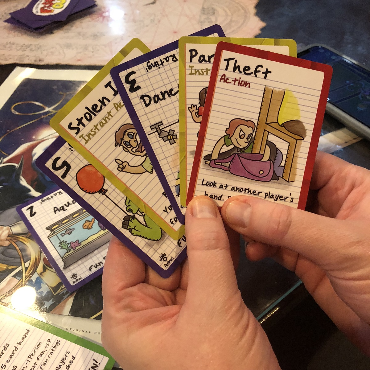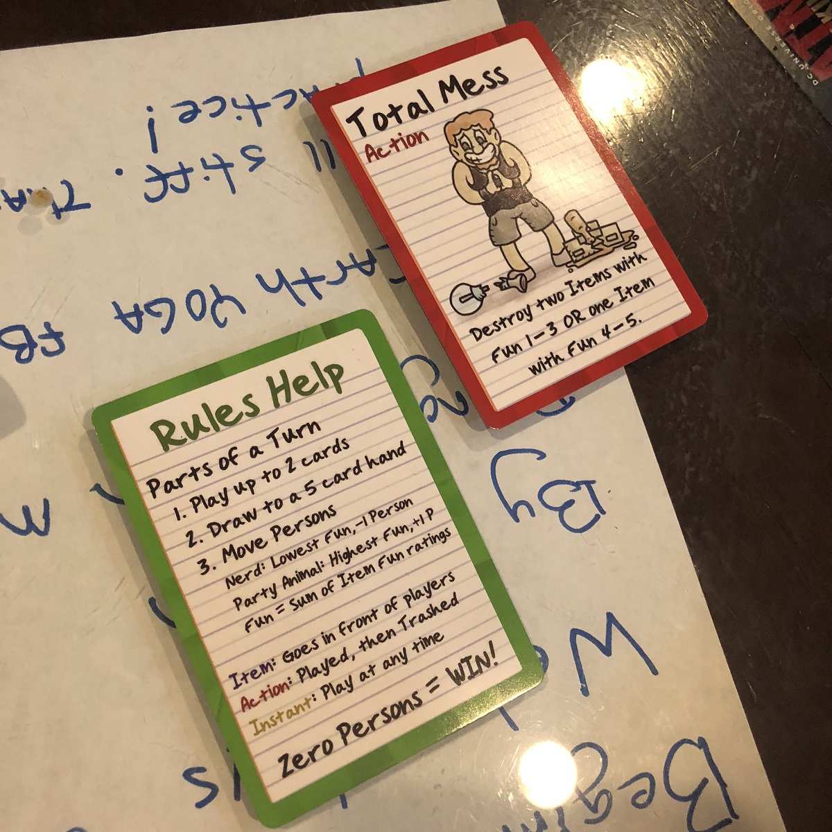 After going around the table, two players will end up with two specific tokens based on how much fun is in their room: the Party Animal, which adds an extra person to your count, or the Nerd, which removes one from your count. The next day people refill their card count to five and start over again until someone finally makes it down to zero.