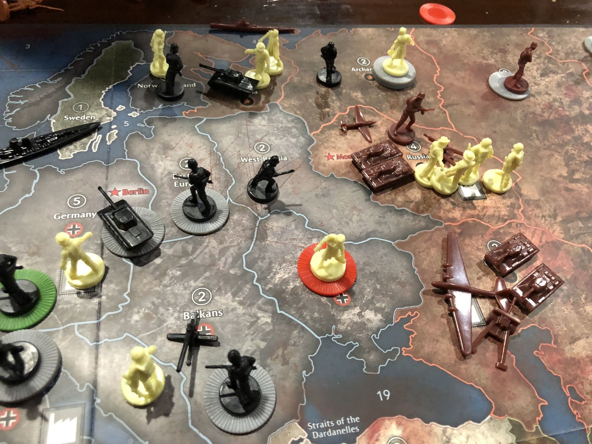 In many ways, I feel that most of our task was "unbreaking" the game more than breaking it. Our goal from Day One was that this game had to be an Axis & Allies game first. We wanted to hit the tropes and emotional beats of the zombie genre, but wherever possible through the rules and structure of the core Axis & Allies game. Two other important goals were making the game fun and meeting expectations for how zombies would play. This led us to add in a ton of new systems to the game to achieve those goals and patch problems. Once we had settled on a satisfying and evocative play pattern, then the task was to figure out how to implement those systems leveraging existing rules as much as possible and new rules as little as possible. This was in service of the intertwined goals of staying true to Axis & Allies, reducing complexity, and taking advantage of existing players' rules knowledge and instincts. In fact, every time we found an existing rule that could be tweaked to handle zombies we found we were able to collapse multiple interrelated new rules into that one old rule, and that gave us high confidence that we were on the right track. I share some details about some of those in my answer to the next question.