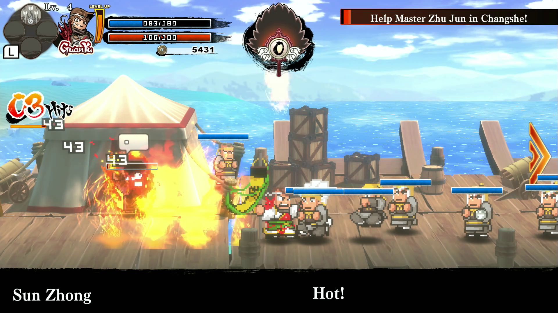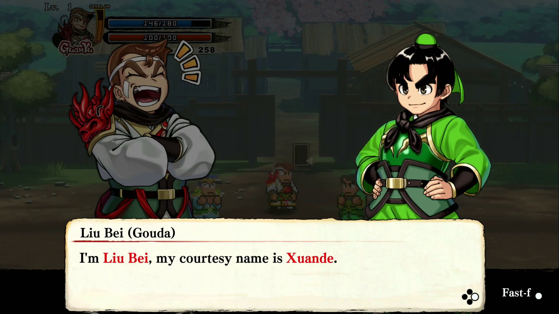 The River City cast of characters step onto the stage of the Three Kingdoms to wreak havoc! This title takes the concept of the beloved Downtown Special: River City Historical Drama! game and crosses international lines to tell the tale of the Romance of the Three Kingdoms. Watch the wacky and comedic action unfold as our hero Guan Yu (you may recognize him as Kunio) tries to survive the tumultuous times of the late Han dynasty. The rest of the cast make appearances as generals, tacticians, and more, giving the Three Kingdoms a River City twist! Enjoy a funny, action-packed take on famous historical events, from the Yellow Turban Rebellion to the Battle of Red Cliffs.