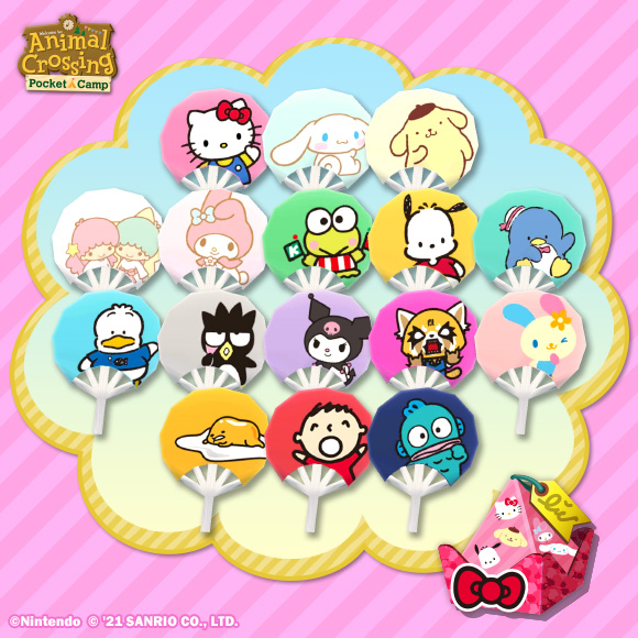 - Players will be able to craft Sanrio gifts to send to their friends, which randomly reward friends with one of several special Sanrio character-themed uchiwa fans. There are a variety of fans to collect featuring fan-favorite Sanrio characters, including Cinnamoroll, Hello Kitty, Aggretsuko and many more!