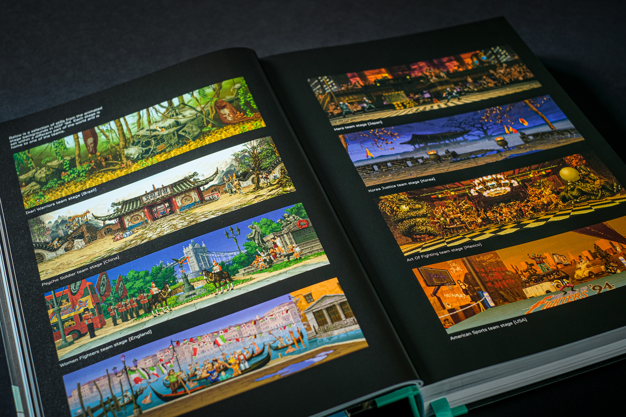 The All-Star Edition of The King of Fighters: The Ultimate History includes not only the book, but also a heavy-board slipcase to house it, five art prints and a postcard featuring exclusive illustrations by Eisuke Ogura. The slipcase includes a series of touch-panels on its fascia, which when pressed, play in-game sound effects for each fighter. This makes the book a perfect collector's item.