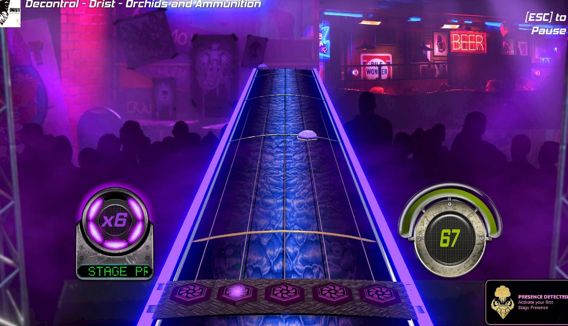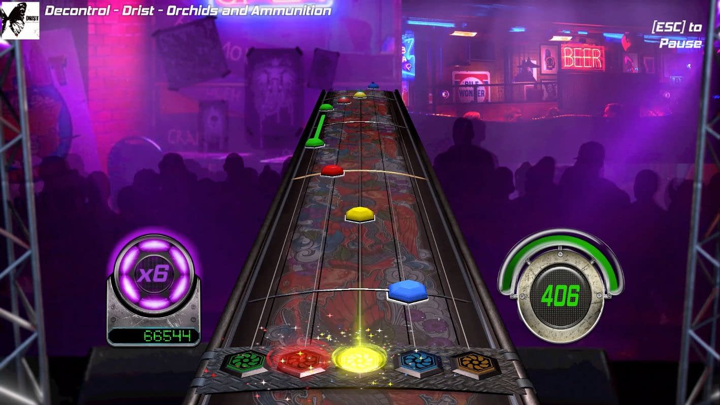 - Classic Mode – The core traditional arcade guitar experience with forgiving timing windows and no-fail gameplay, so new and casual players stay in a flow state and focus on the vibe and the music.