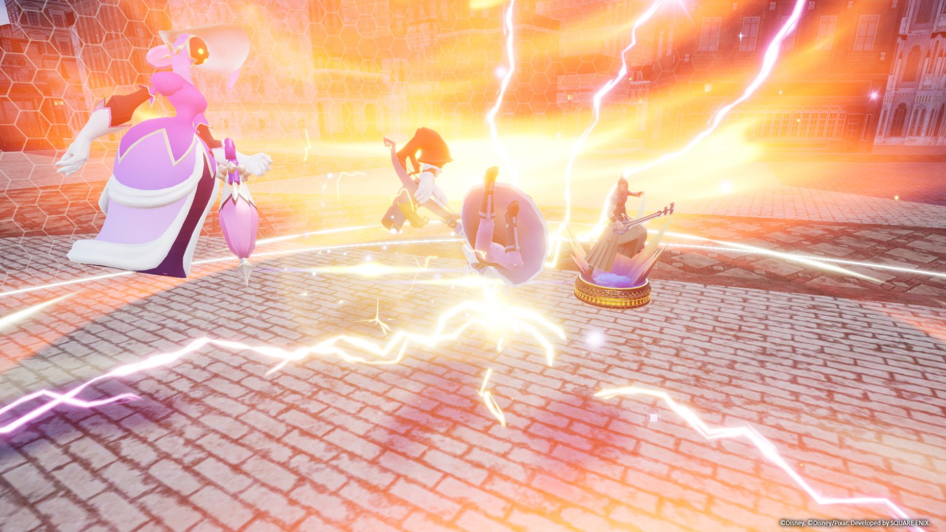In the announcement trailer, Sora makes a triumphant return with an updated look at the beginning of an epic new storyline titled the "Lost Master Arc." Beginning with Sora facing off in a boss battle against a giant enemy, players are introduced to the Quadratum, a large, expansive city set in a gorgeous, realistic world unlike anything ever seen before in the Kingdom Hearts series. Fans will be excited to see the return of Sora's well-known companions Donald and Goofy, in addition to the first appearance of Strelitzia, a mysterious new character who appears before Sora in this strange new setting. Fans can also look forward to Kingdom Hearts: Missing-Link, an all-new game for iOS and Android devices, which allows players to embark on adventures from the realm of Scala ad Caelum into the real world. Players will be able to engage in exhilarating battles against the Heartless and discover a new, original story. A closed beta test is planned for 2022.