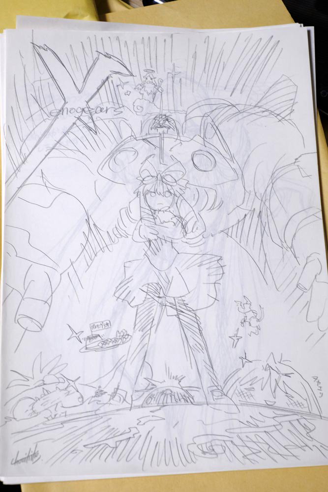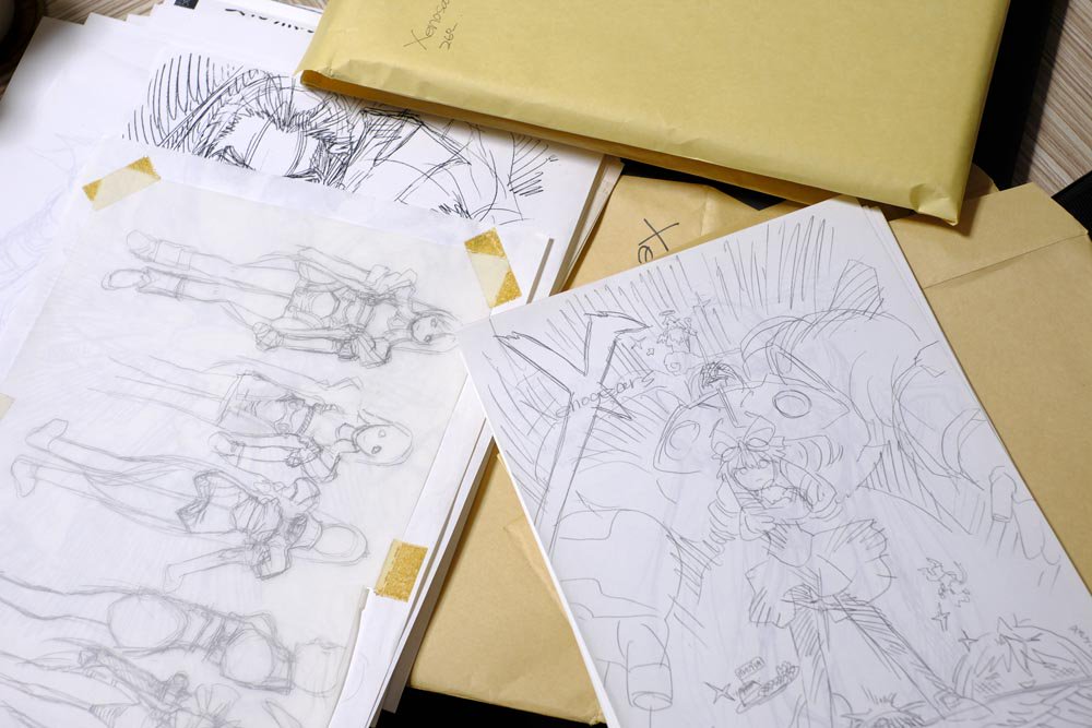Meanwhile, Tanaka-sensei posted a large batch of artwork he created for the game, apparently including a couple of new drawings, alongside some older pieces that were never delivered or rejected.