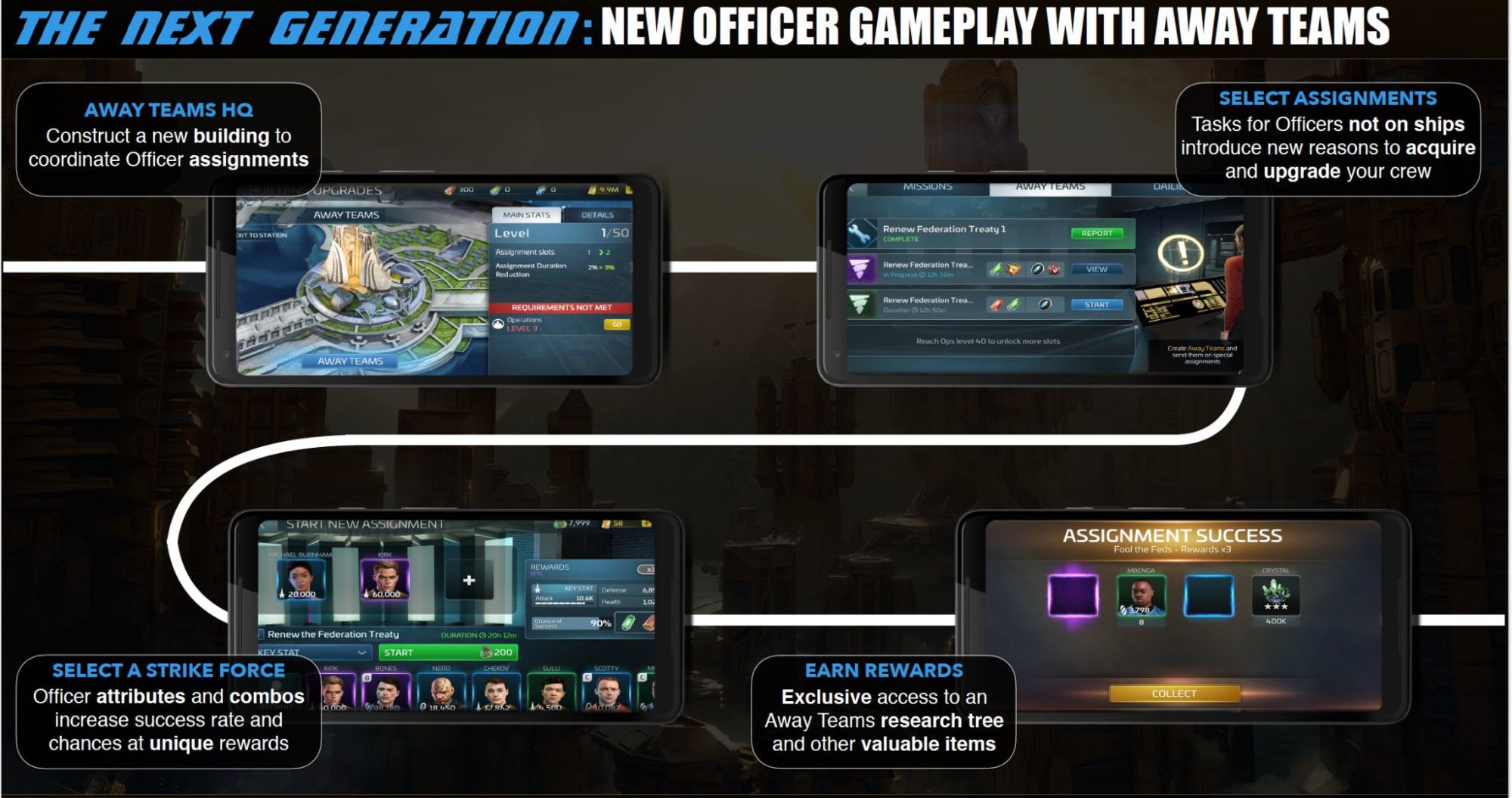 For the very first time, players can send officers on assignments. It's time to revisit strategies and assess the value of existing officers as players send them off throughout the galaxy to complete unique tasks and earn rewards! Players will create high-performance teams by mixing and matching officers with complementary skills fit for unique missions that can earn exclusive rewards.