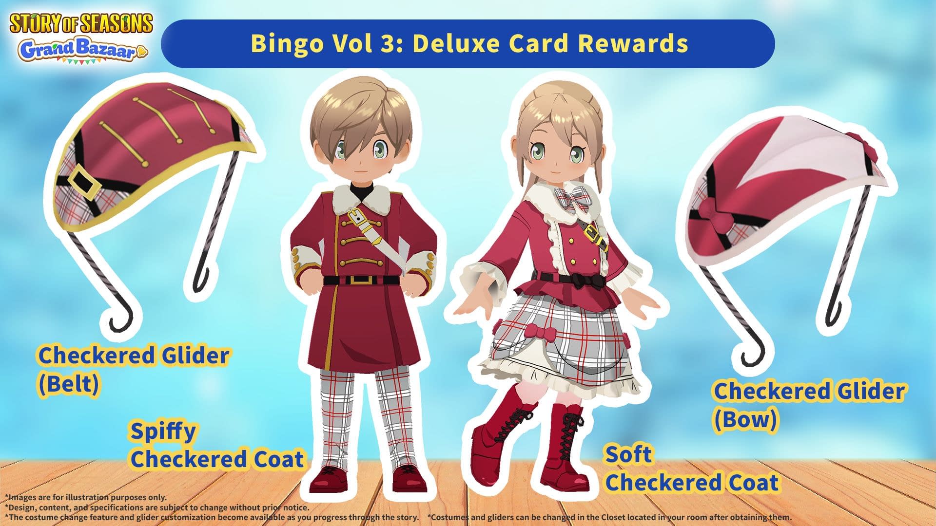 Update v1.3.0 makes hard work in Zephyr Town less difficult! Quality of life updates includes adjusted harvest yields, the ability for horses to eat treats separate from feeding, changes to the dirt mounds created by extreme weather conditions, and optimized character cosmetics to help you customize an even a better-looking farmer. The new update also includes four new Deluxe Bingo Cards in the latest round of Happy Bingo, a minigame that rewards players with in-game items and cosmetics for completing various activities. These new cards will be redeemable for holiday-ready plaid outfits including a Soft or Spiffy Checkered Coat, along with the Checkered Glider with Belt or Bow accent.