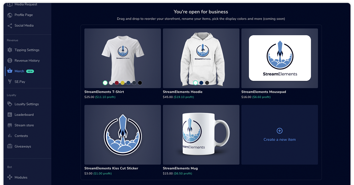 StreamElements Opens Custom Streamers Merch Store With SE.Merch