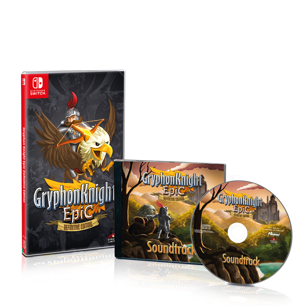 Gryphon Knight Epic: Definitive Edition is a wonderful "back to the roots" title for Strictly Limited Games, given that Gryphon Knight Epic for PS4 was our second release three years back. We are now delighted that we will publish the Definitive Edition for Nintendo Switch. Gryphon Knight Epic: Definitive Edition tells the story of an accomplished knight and his loyal gryphon in an action-packed 2D Shoot 'Em Up with epic boss fights in a medieval world. Discover what is happening in the kingdom through 9 different stages, fight in epic duels against challenging bosses to earn their weapons and find equipment to grow stronger, all the while learning progressively about the ancient lore of the realm… Everything packed in a beautiful modern take on pixel art graphics! The Limited Edition is limited to 2.400 copies for Nintendo Switch worldwide, priced at 29,99€. The Limited Edition Soundtrack bundle (including OST) is limited to 600 copies for Nintendo Switch, priced at 39,99€.