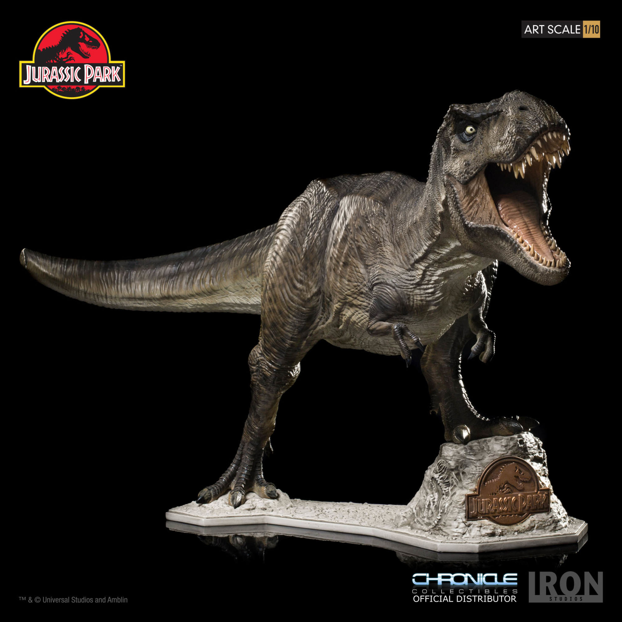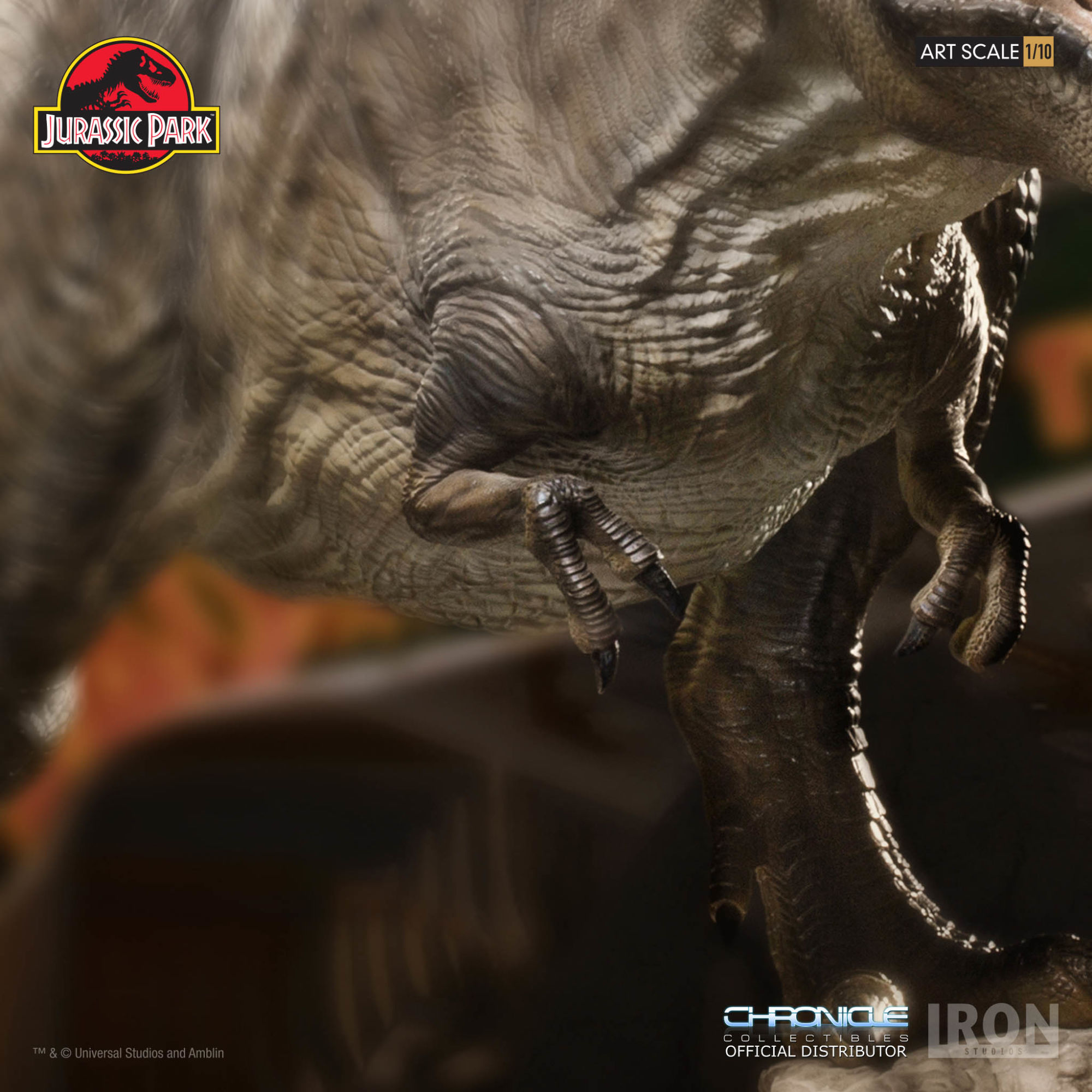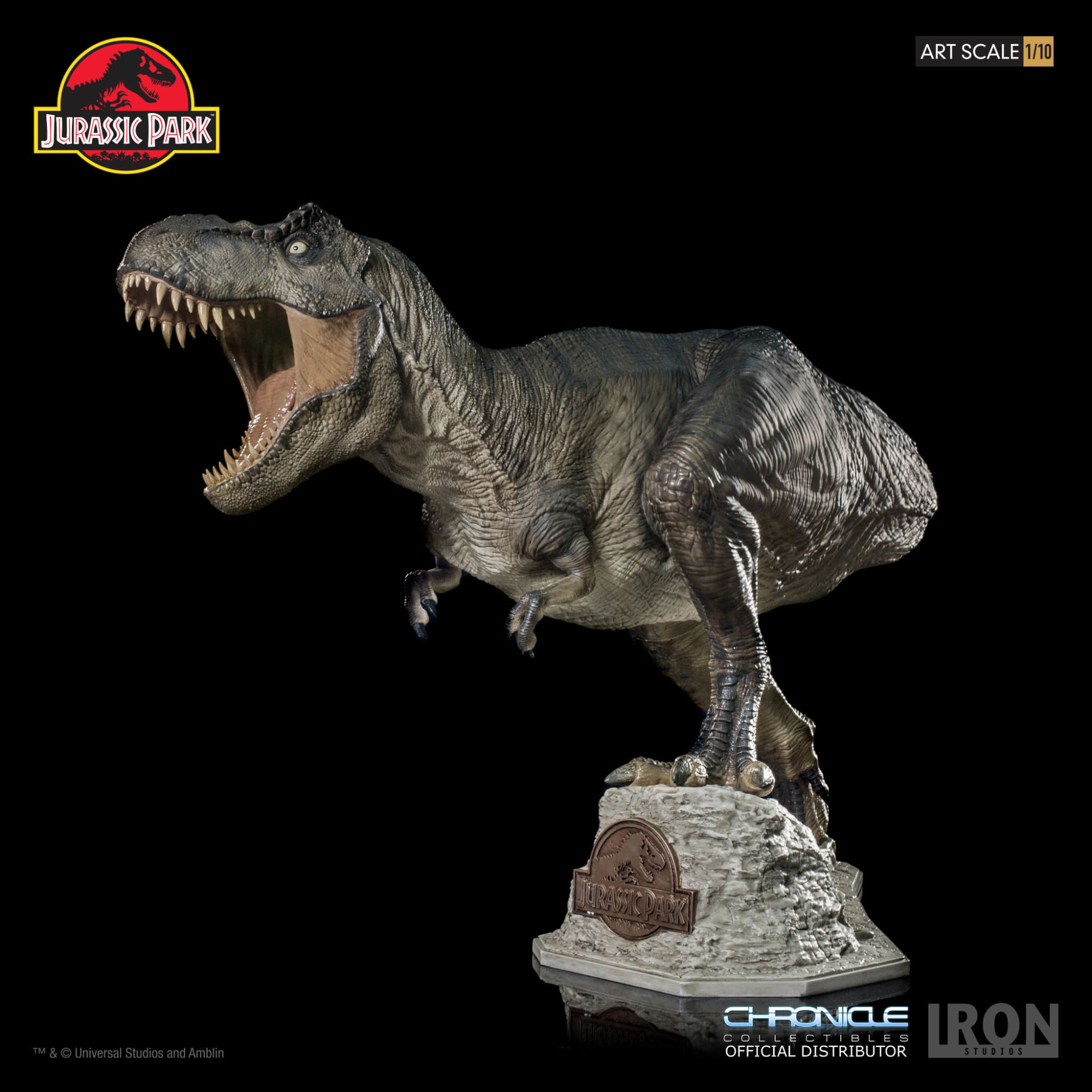 Chronicle Collectibles is excited to announce the next Jurassic Park release from Iron Studios that we will be exclusively distributing.* Presenting the T-Rex Art Scale 1:10 statue from the movie that started it all! This T-Rex Art Scale 1:10 statue is designed to represent the T-Rex shortly after she breaks through the fence line to terrorize our heroes in the film. As with the previous Jurassic Park Art Scale 1:10 releases from Iron Studios, this statue will fit into the complete 1:10 scale "T-Rex Attack" diorama once all pieces are released and assembled. Chronicle Collectibles will exclusively distribute* all subsequent pieces of this diorama as Iron Studios makes them available.