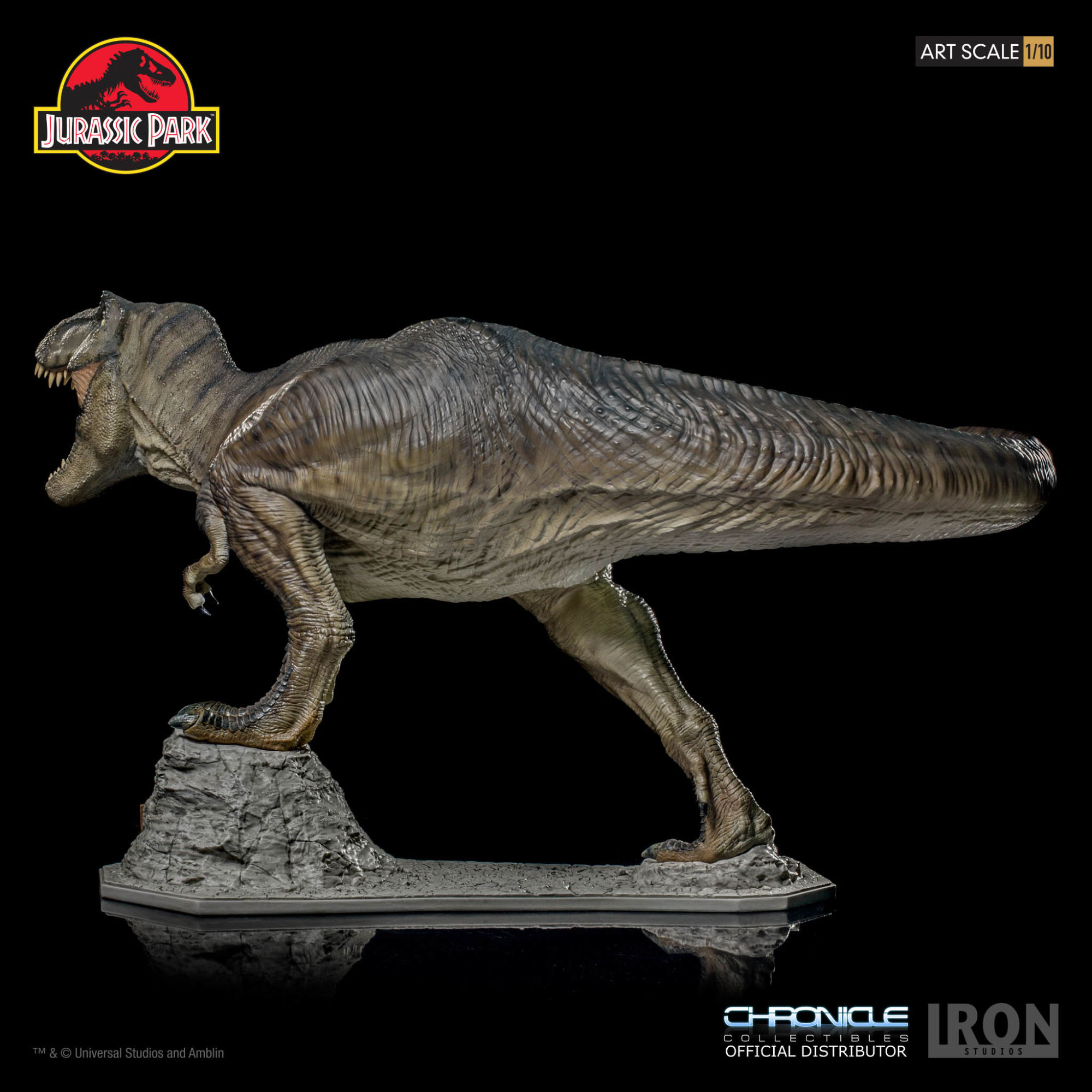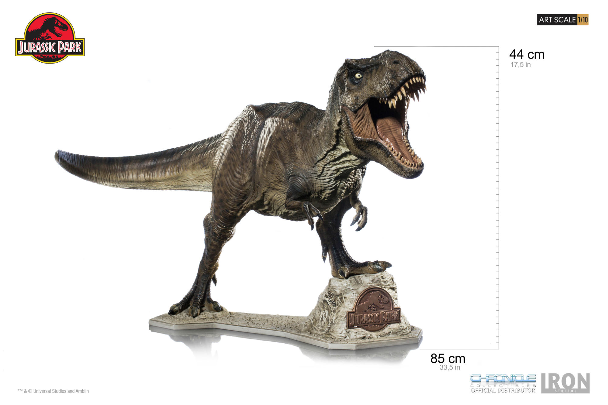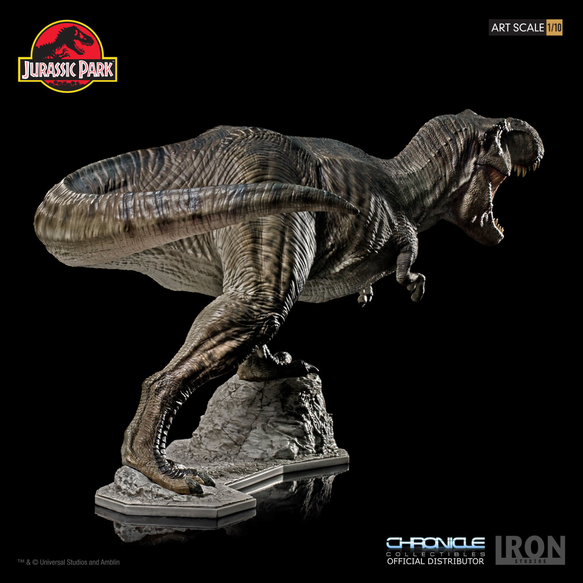 Chronicle Collectibles is excited to announce the next Jurassic Park release from Iron Studios that we will be exclusively distributing.* Presenting the T-Rex Art Scale 1:10 statue from the movie that started it all! This T-Rex Art Scale 1:10 statue is designed to represent the T-Rex shortly after she breaks through the fence line to terrorize our heroes in the film. As with the previous Jurassic Park Art Scale 1:10 releases from Iron Studios, this statue will fit into the complete 1:10 scale "T-Rex Attack" diorama once all pieces are released and assembled. Chronicle Collectibles will exclusively distribute* all subsequent pieces of this diorama as Iron Studios makes them available.