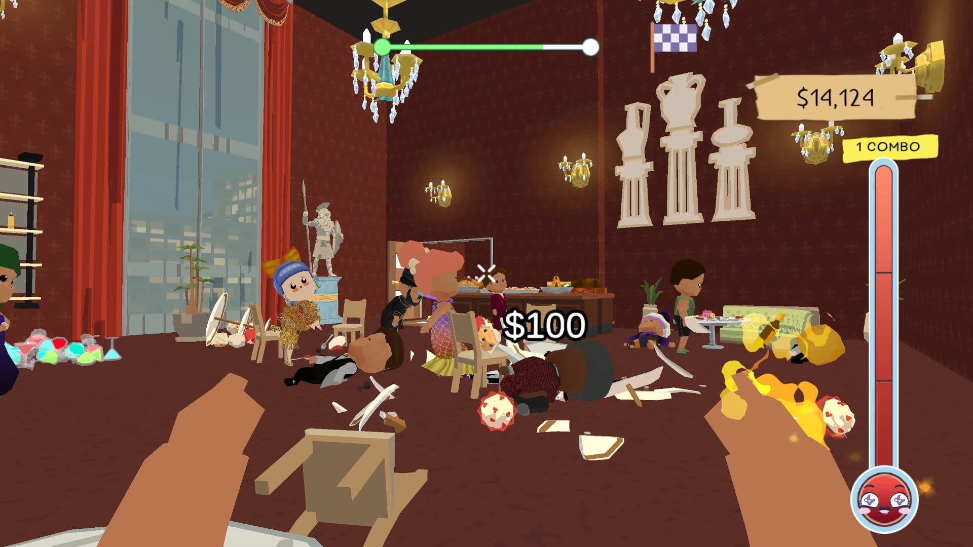 - Unleash your rage by flipping tables and throwing items in hilarious, everyday scenarios for high scores.