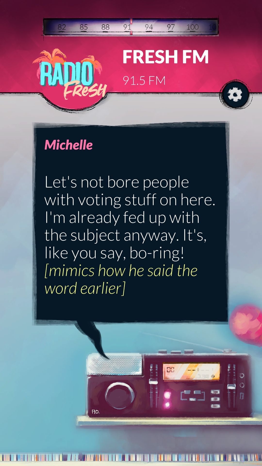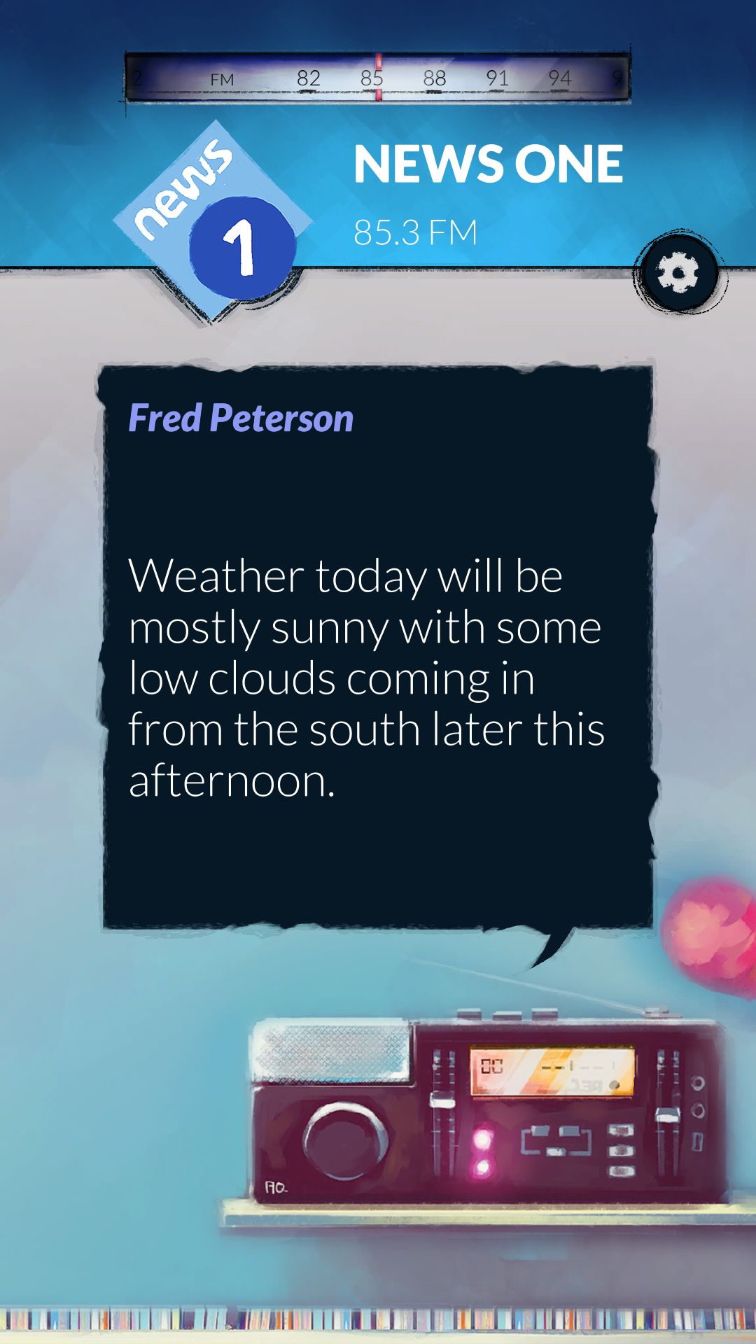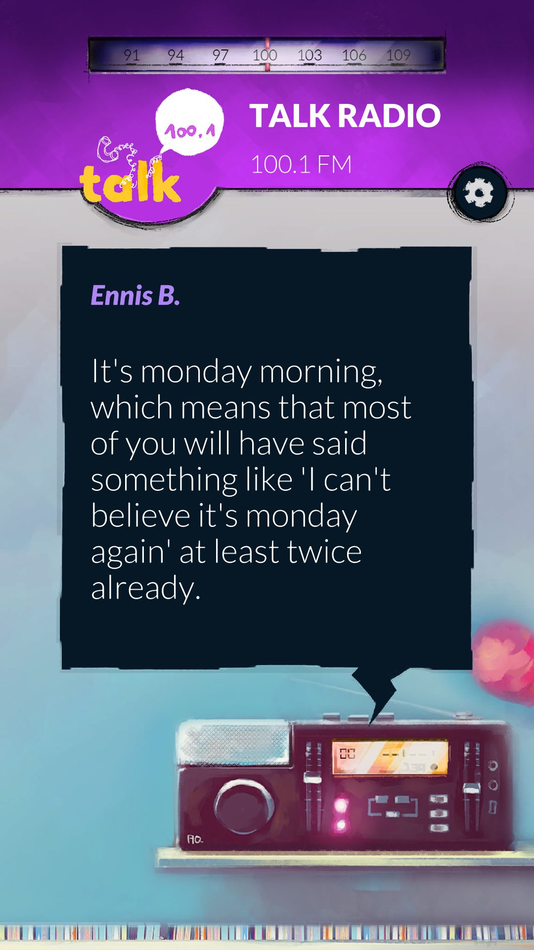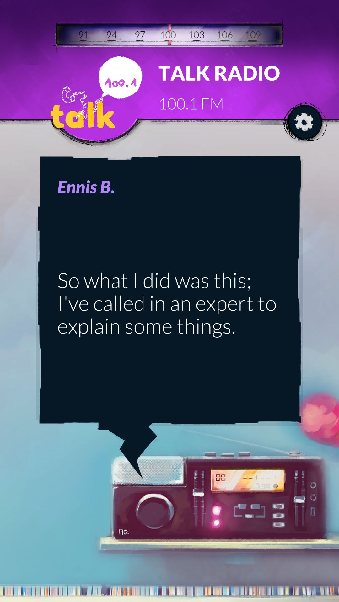 This game has you listening to the same three minutes of audio in a time loop that no one realizes they're in except for you. You switch between radio stations that are all telling their own stories of the day in their morning shows, but all of them are connected somehow. It's up to you to switch between the stations and change what happens by essentially connecting the dots that link all of them together. When you gather all that info and redistribute it, you change what happens during the loop. Our guess, even though this was a demo, is to figure out how to get out of the loop altogether, which is an ingenious way of using audio and mobile tech together for a game. Alt-Frequencies is set to be released in May 2019 for iOS, Android, and Steam.