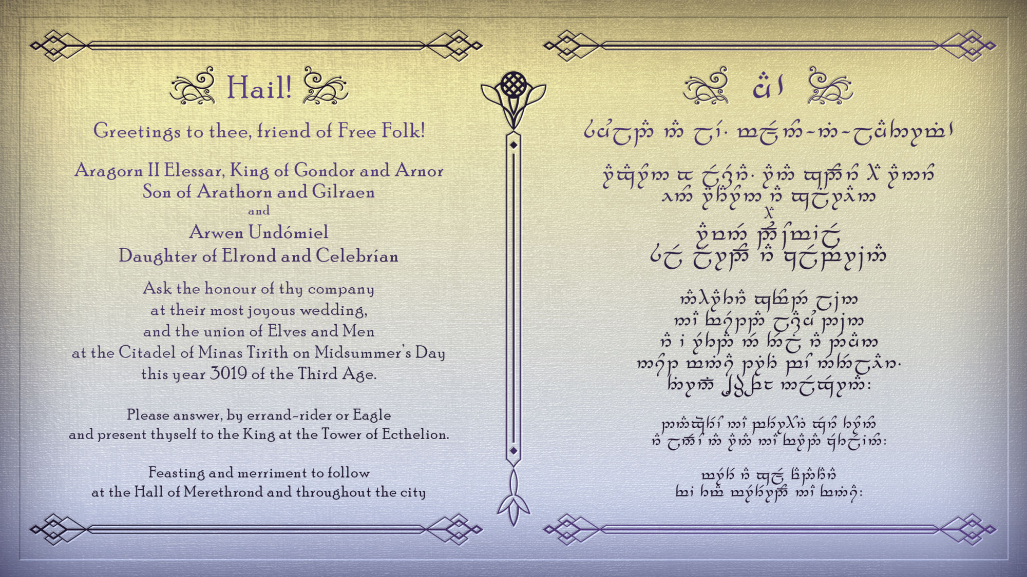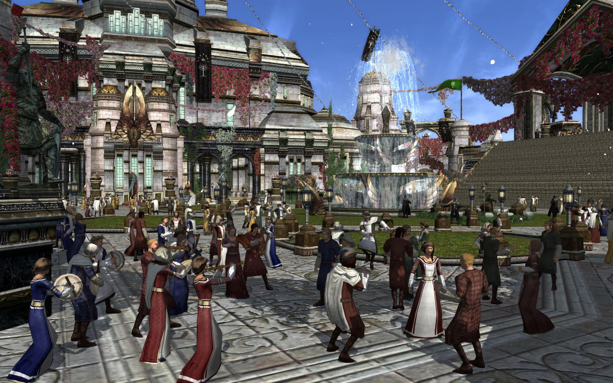 Middle-earth is gathering in Minas Tirith to celebrate the wedding of Arwen and Aragorn! Epic Volume V, Book 1: 'A Time of Celebration' begins with King Elessar in the Throne Room of Minas Tirith (Midsummer). Additionally, from now through July 20th, players can take part in celebratory Midsummer quests and instances to celebrate the wedding. An auto-bestow quest is available that provides a map to Minas Tirith (Midsummer) as well. Once there, an introduction quest will get you started on the Midsummer Festival. Additionally, some Stable-masters in Middle-earth will bring characters to Minas Tirith (Midsummer). Finally, Midsummer Wedding-planners are located in Thorin's Hall, Duillond, Bree-town, and the Party Tree to direct players to Midsummer quests in those areas. Earn titles, an emote, a kite, and more by completing Deeds associated with the Midsummer Festival! The Midsummer Festival will be a yearly event.