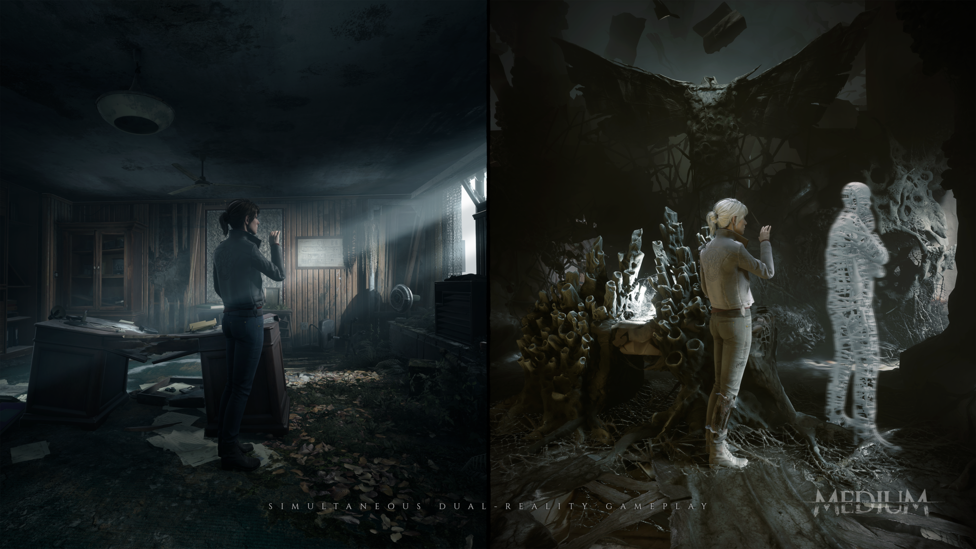 In the new gameplay walkthrough of The Medium, first seen live during Geoff Keighley's Xbox Games Showcase post-show livestream, viewers will see how players can control Marianne, a medium hounded by visions, living and interacting across two different worlds simultaneously with developer commentary from Lead Game Designer, Wojciech Piejko. Throughout the trailer, Marianne's movement through both worlds is controlled by a single analogue stick, while using different interactions between each of the worlds to solve puzzles and explore various paths. Viewers can also catch a glimpse of how Marianne in the Spirit World has different abilities than the real-world Marianne, including a supernatural ability called Out of Body. Launching on Xbox Series X and PC in the 2020 Holiday season, The Medium renders two fully-fledged and visually distinct worlds simultaneously with no loading screens. Having access to both worlds gives a unique perspective to the tension-fueled, psychological horror game as the dual-reality gameplay with this visual fidelity only being possible on next-gen hardware.