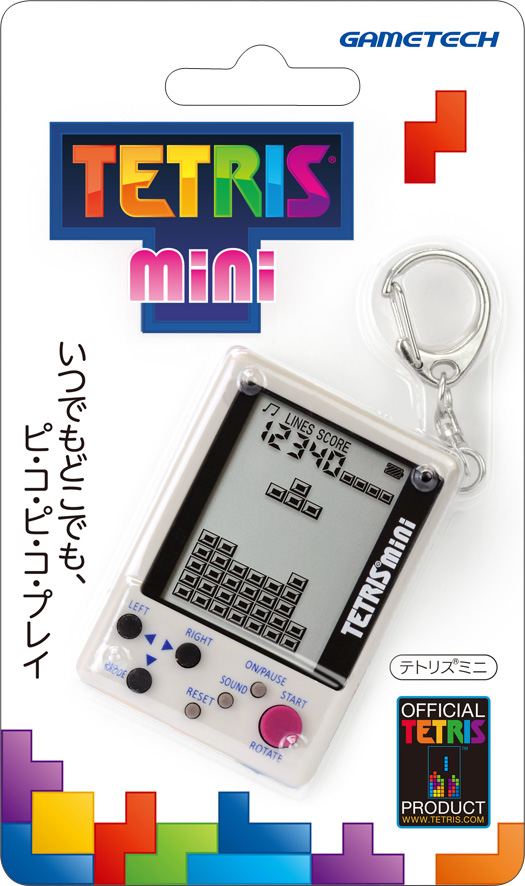 Wanna play Tetris wherever you go but don't want something bulky? The Tetris Mini may just be the thing you need to get. Japanese company Gametech revealed this week that they are releasing an officially licensed mini version of the classic puzzle game that is the size of a large keychain ornament. As you can see from the photos below, this isn't a full-on game or a recreation of the original, more of a shrunk-down version of the game so you're able to play it very quickly in a small monitor. There's a few different designs of this thing, but the one that's obviously got everyone's attention right now is the one that looks like a Game Boy, even down to the color of the start button matching that of the A & B buttons on the original.