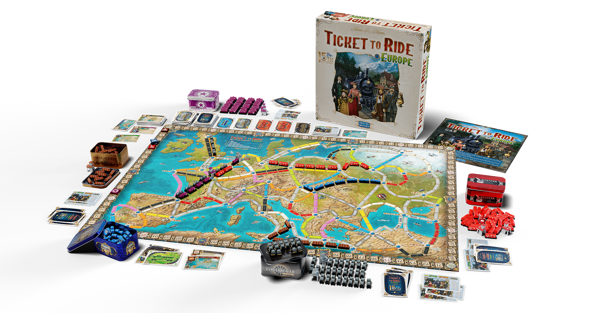 "Hard to believe it's been 15 years. Ticket to Ride Europe still looks so fresh and young. But this version has bulked up a lot in both size and in tons of new tickets that create an infinite number of possible ways to play the game." says Alan R. Moon, Designer of Ticket to Ride. "The new train cars and stations and the new art make the game look absolutely gorgeous when laid out on the table. Here is hoping you enjoy another 15 years of fun."