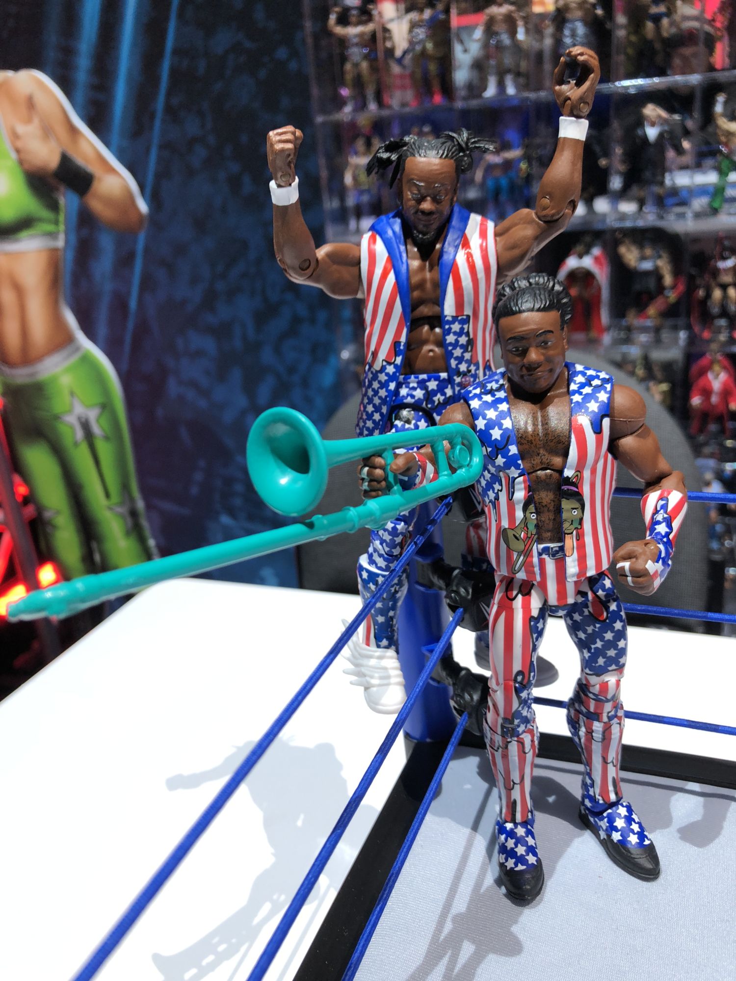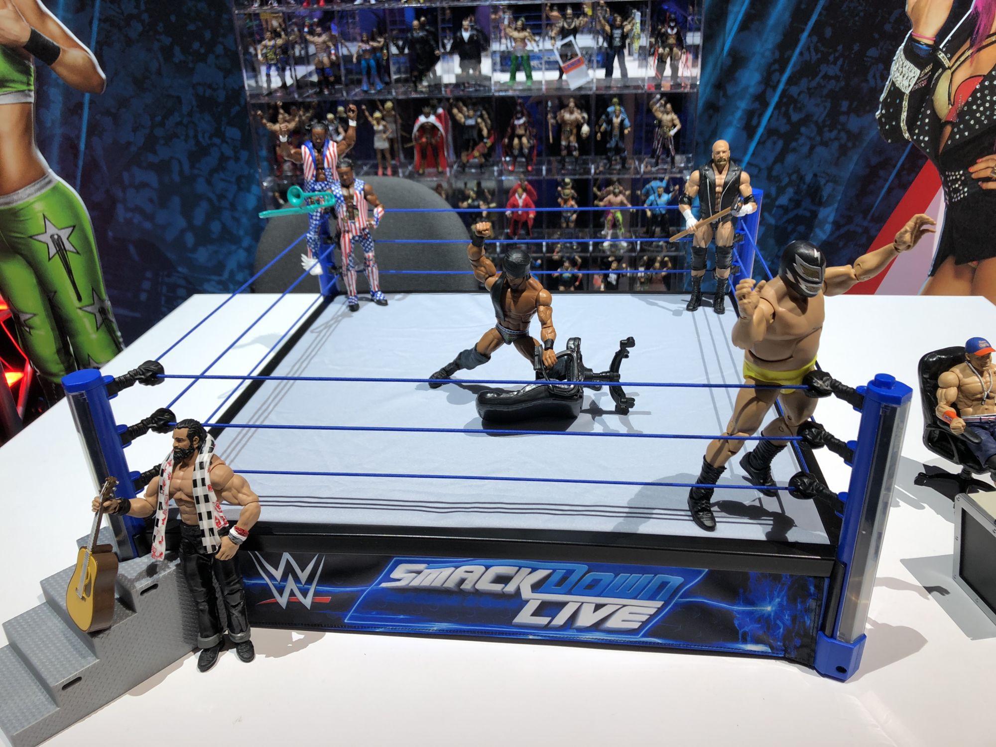 The WWE line will continue to add to its impressive roster of figures, in both the Elite and Basic style. Personally, my collection is ready to walk with Elias, and his figure looks fantastic. New versions of Kurt Angle, Andre The Giant, Jinder Mahal, Dean Ambrose, Seth Rollins, Mickie James, and more are all on the way. Charlotte Flair and Alexa Bliss were also on display using the new face-printing tech they have incorporated, and boy do they look great. Jinder will come packed into a new SmackDown Elite Scale ring, the same as the Raw one that came with Goldberg last year. The WWE line of dolls will continue for the female superstars with Alexa Bliss, Nattie, and more getting the doll treatment. And we are getting new mini-wrestling buddies of female wrestlers like Bayley and Sasha Banks as well.