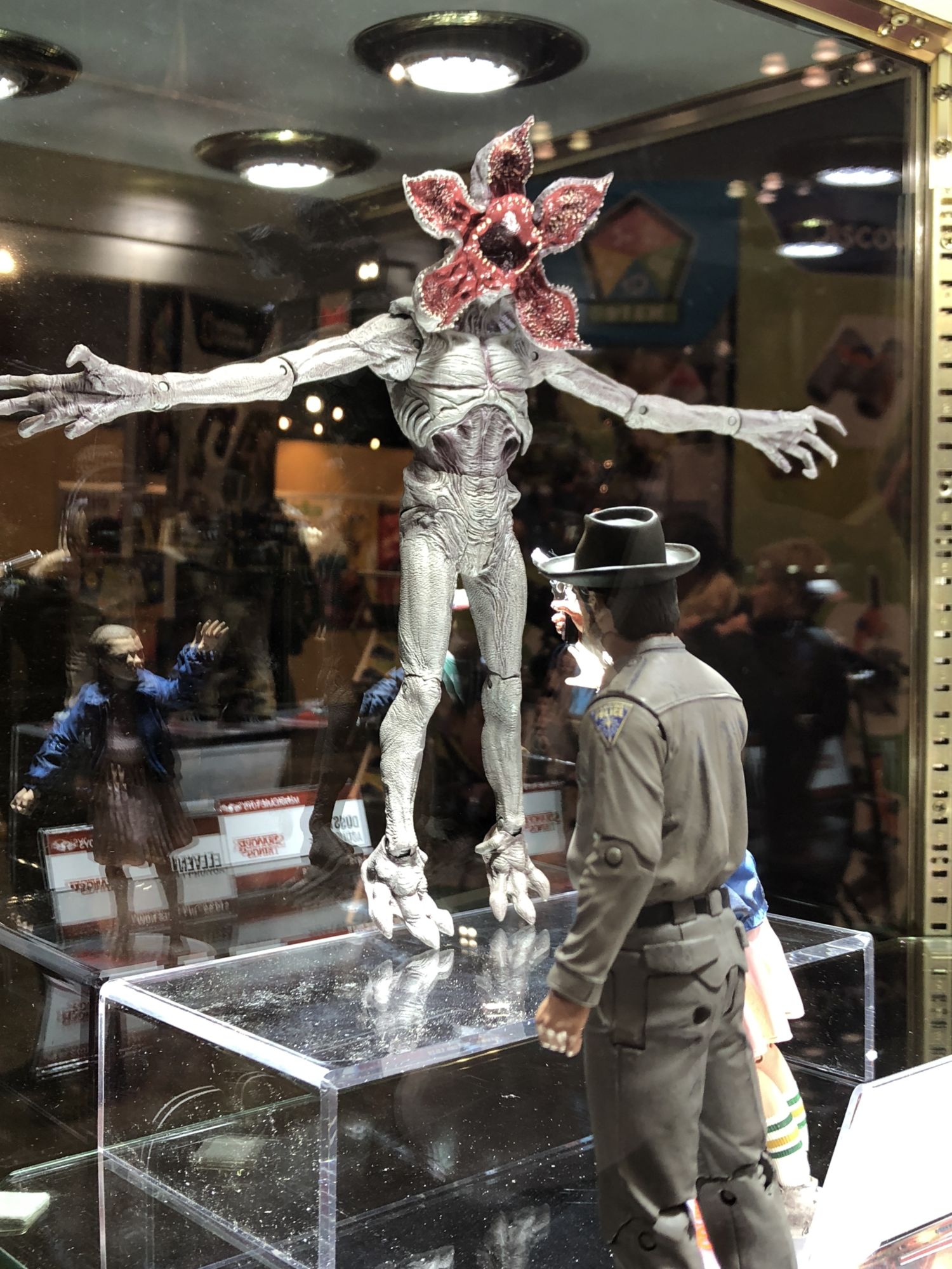 First up is Stranger Things. I was pretty unimpressed with the first two figures in the line, Hopper and Eleven. Hopper needed upper body articulation, and Eleven suffered from accessory issues that made the figure look ridiculous. I am happy to see that they are listening, and what they had on display did not seem to suffer from those issues. The Demogorgon looks incredible, and full of awesome articulation. There are very few poses you will not be able to get this creature in. Looking past that one, the Punk Rock Eleven looks much improved over the first release, Will and Mike look spot on (and bonus points for posing Will like that in the package), and Dustin and Dart are incredible. The colors there are phenomenally done.