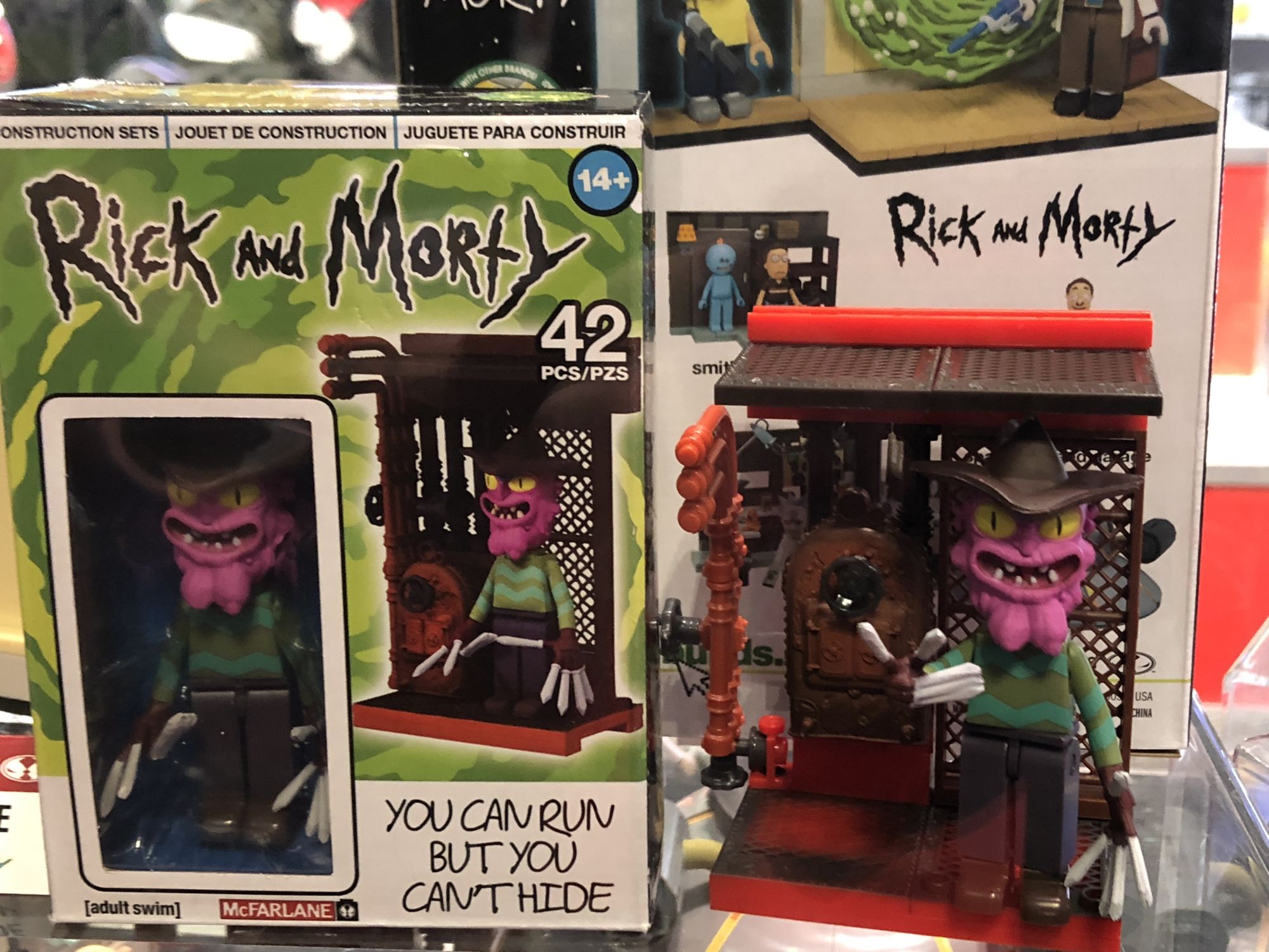 Check out all of the photos below, of all the figures they had on display, including more construction sets from Rick and Morty, Hello Neighbor, and Five Nights at Freddy's.