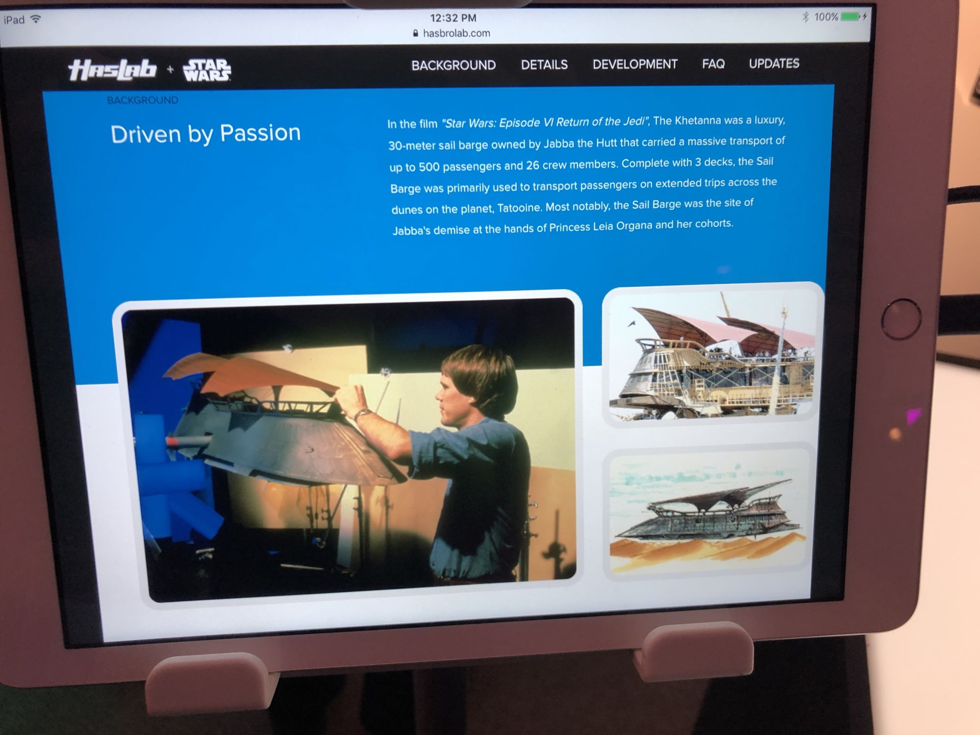 Then, a dream piece for any Star Wars collector was shown: Jabba's Sail Barge. A whopping four feet long, featuring tons of little rooms and even a stuffed, dead baby Rancor on the wall. And it will come with an in scale Jabba. It has a cockpit. It is everything we could have ever dreamed.