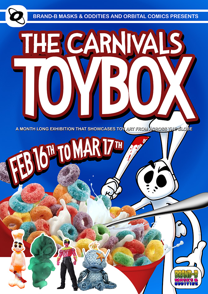 As a fictitious toy sculptor, Brownlie has also curated a toy exhibition at Orbital Comics in London right now, featuring both his work and the work of others, creating and showing off toys that never were, but could be if the right, twisted corporate executive had been in charge and hopped up on PCP…